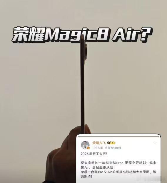 荣耀高管再度回应Air手机争议荣耀方飞回应王自如相关话题,重申Air系列打造决心。凭借多年技术积累,荣耀具备Pro级Air手机打造实力。旗下Magic V系列作为三代行业最薄折叠屏产品,搭配青海湖电池、金刚巨犀玻璃、荣耀绿洲护眼显示等核心技术构成了其打造Air系列的核心支撑。
