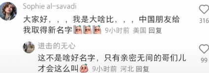 大家好,,,我是大啥比,,,中国朋友给我取得新名字
