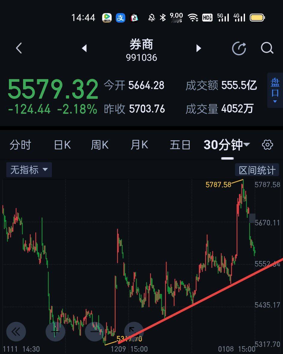 券商板块,今天的走势结构还是5分钟的线段,一分钟的中枢结构还没有雏形,如果以中枢