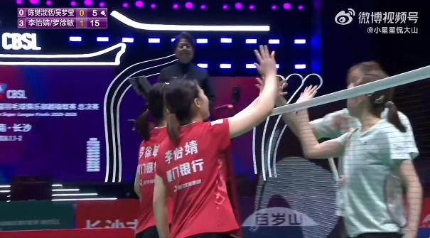 2025羽超联赛总决赛 半决赛实时赛况 浙江竞体 0-3 厦门银行 1、沈烜垚/吴梦莹 15-11、11-15、6-15 冯彦哲/黄东萍 2、陈奕诺 7-15、6-15 韩悦 3、陈樊淑湉/吴梦莹 10-15、5-15 李怡婧/罗徐敏 4、肖高博 vs 安东森 5、王昶/陈旭君 vs 何济霆/林祥毅 PS:浙江队心态真不错,打得过就打,打不过就不打