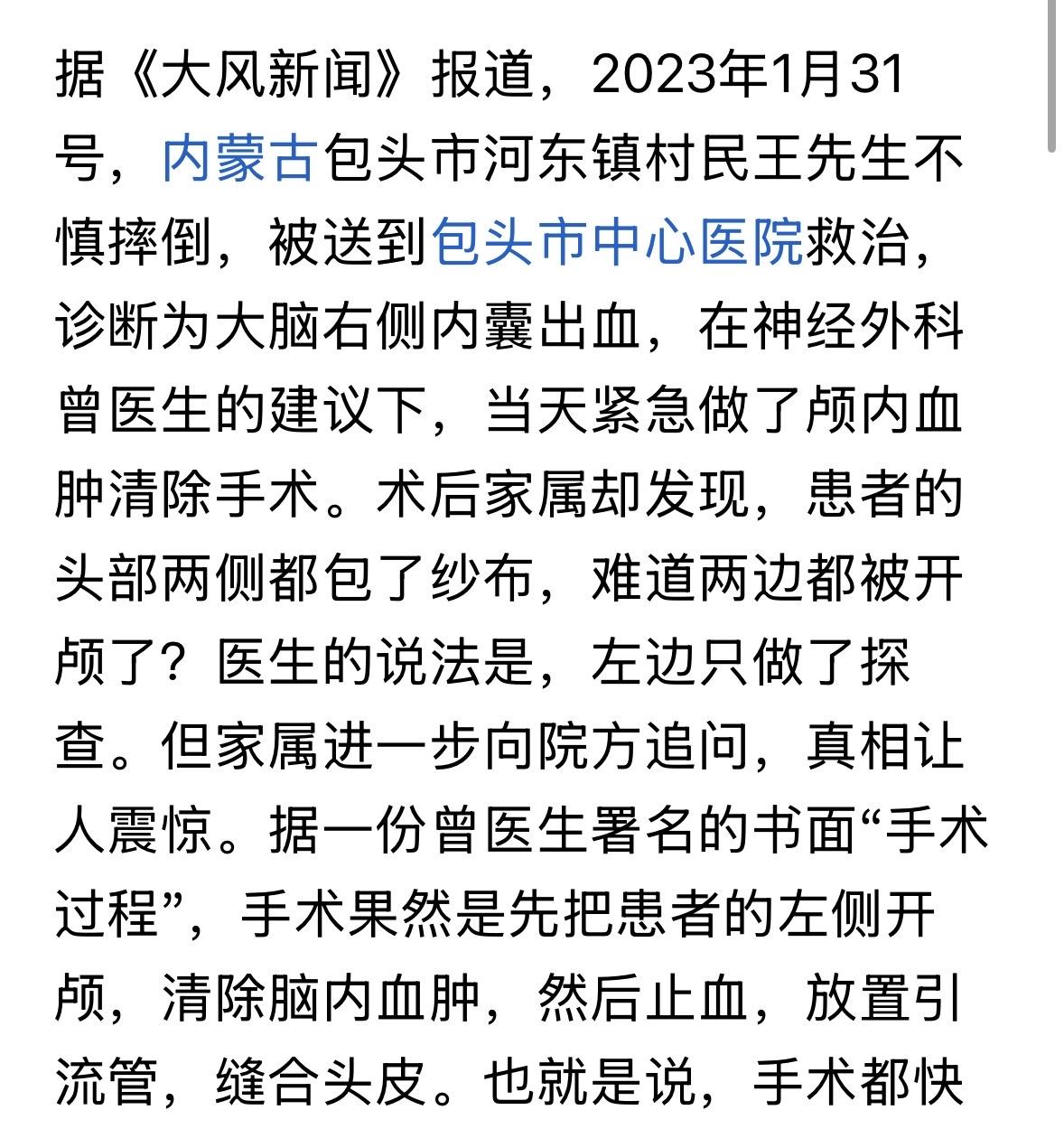内蒙古包头,男子摔一跤后右脑出血,医生建议立马手术,谁料医生做完手术才发现,竟然