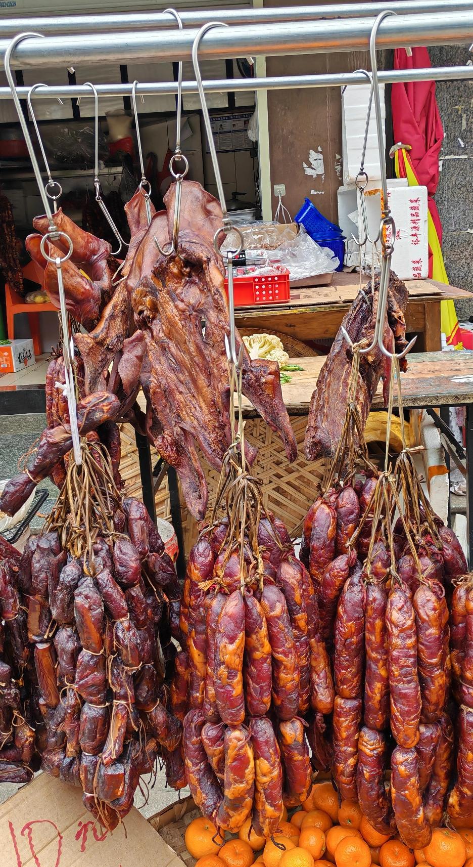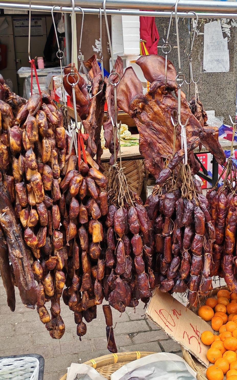 灌香肠腊肉是我们这里冬天的传统,但是现在很多年轻人都不自己灌了,毕竟又要买肉、切肉,和佐料这些还是很麻烦,所以很多人都买来吃,小区里面的小超市本来是卖水果蔬菜的,到了冬天就开始卖香肠腊肉,生意还不错。