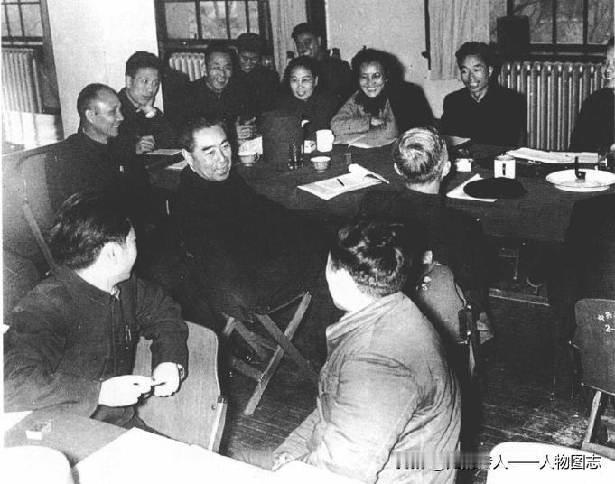 周恩来出席中共天津市第二届代表大会第二次全体会议期间,参加小组讨论会并和代表们座谈。