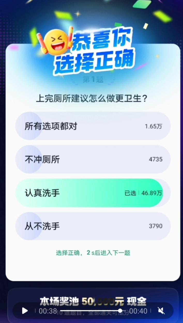 问你们一个问题,上完厕所之后会洗手吗?今天有一道题就是这个问题,答案是49万人中有2万3千的人是不洗手的,比例差不多为25比1。知道很多人可能会说是点错了,但是终究也只是少部分人,比例还是差不多的。所以我们很多人身体不好,其实还是自己平时生活不良习惯造成的,外因占少部分,自身才是主要原因。卫生 医疗卫生 讲卫生 生活习惯 良好的卫生习惯 讲卫生勤洗手 洗手常规 洗手方式