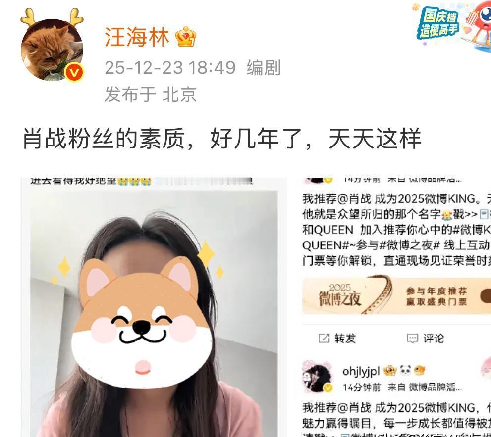 汪海林又投诉了肖战粉丝。 这次理由很离谱。 说对方P图造谣。 点开一看,不过是粉丝剪的安利视频。 一个50岁的资深编剧,追着25岁顶流的粉丝穷追猛打。 这画面本身就充满了魔幻感。 汪海林手握17个微博投诉记录。 每一个都精准指向肖战超话的大粉。 他像一个潜伏在饭圈的“纠察员”。 截图,取证,投诉,一气呵成。 另一边,肖战本人从未回应。 他的工作室只在半年前发过一张律师函,然后归于沉寂。 沉默,有时是最大的蔑视。 这种反差极具戏剧性。 一方是火力全开的“长枪”,一方是纹丝不动的“铁壁”。 我们把时间轴拉长,会发现一个更有趣的循环。 汪海林批评流量明星——粉丝反击——汪海林截图投诉——获得新素材——继续批评流量明星。 这是一个完美的流量闭环。 2023年,汪海林相关话题阅读量超10亿。 其中80%与肖战有关。 他批评肖战“没有演技”,肖战主演的《梦中的那片海》央视收视率峰值破2.5%。 他嘲讽粉丝“乌合之众”,肖战代言的38个品牌无一解约。 数据不会说谎。 市场用真金白银投了票。 这揭示了娱乐圈一个残酷的底层逻辑:批评顶流,是成本最低的翻红方式。 不需要打磨剧本,不需要揣摩角色。 只需要打开微博,点下发送键。 就能瞬间获得几万条评论,几百个转发,以及第二天娱乐版的头条。 这是一种降维打击。 用资深前辈的身份,去收割年轻偶像的流量红利。 就像一头老狮子,盯上了草原上最肥美的猎物。 但猎物太大,咬不动。 只能不断骚扰,激怒周围的鬣狗。 粉丝就是那些鬣狗。 他们年轻,冲动,容易被点燃。 一旦他们失控反击,就坐实了“饭圈乱象”的罪名。 老狮子的批评就显得更加正义凛然。 这是一场不对等的战争。 一个靠话题生存,一个靠作品立足。 肖战的团队显然深谙此道。 不回应,不纠缠,不给任何额外的热度。 把战场限制在微博一隅,不让它蔓延到主流舆论场。 汪海林的投诉,像打在棉花上的拳头。 有力,却无处着力。 他越是声嘶力竭,越显得肖战那边的沉默,像一道深不见底的海。 这种沉默,反而让汪海林的“战斗”显得有些滑稽。 一个成年人,执着地与一个孩子的粉丝团较劲。 这背后,是创作力的焦虑,还是对时代变化的恐惧? 当传统的权威,失去了对“定义好作品”的垄断权。 他们该如何自处? 是继续挥舞批评的大棒,还是转身回到创作桌前? 这或许才是这场闹剧,最值得思考的问题。 你认为,资深评论家该不该下场和粉丝“对线”?