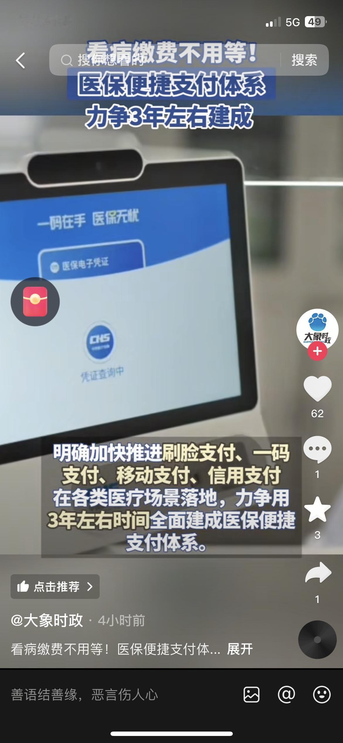 家人们!医保又出便民大招了!刚看到国家医保局1月8日发的通知,要花3年时间建医保便捷支付体系,以后看病缴费再也不用排长队了! 划重点: ✅ 刷脸支付、一码支付、移动支付全部覆盖医院和药店 ✅ 2026年首批城市先落地(每个省至少2个),2028年全省推开 ✅ 再也不用带实体医保卡,手机刷脸/扫码就能结算 想想以前看病排半天队缴费的日子,这下真的方便了,尤其是老年人不会用手机的,刷脸就能搞定,太贴心了! 你们那看病缴费还需要排很久吗?评论区说说~ 医保新规 看病缴费不用等