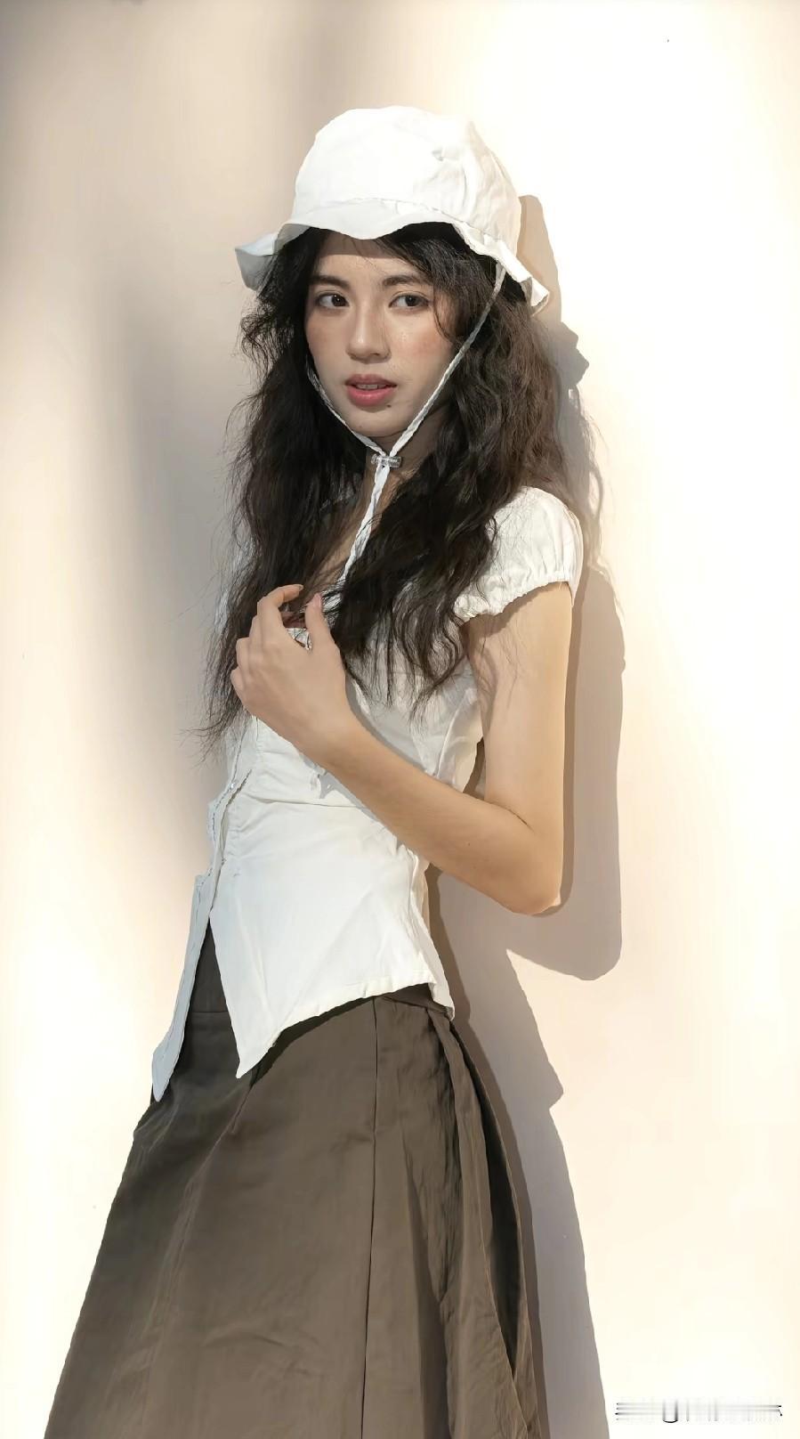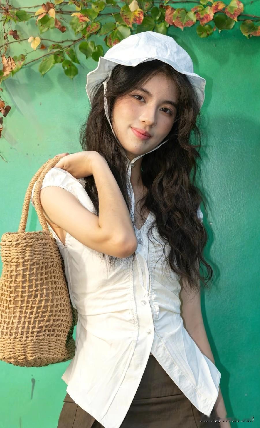 少女清新穿搭,黄色吊带裙搭配米色长裤,轻松惬意。