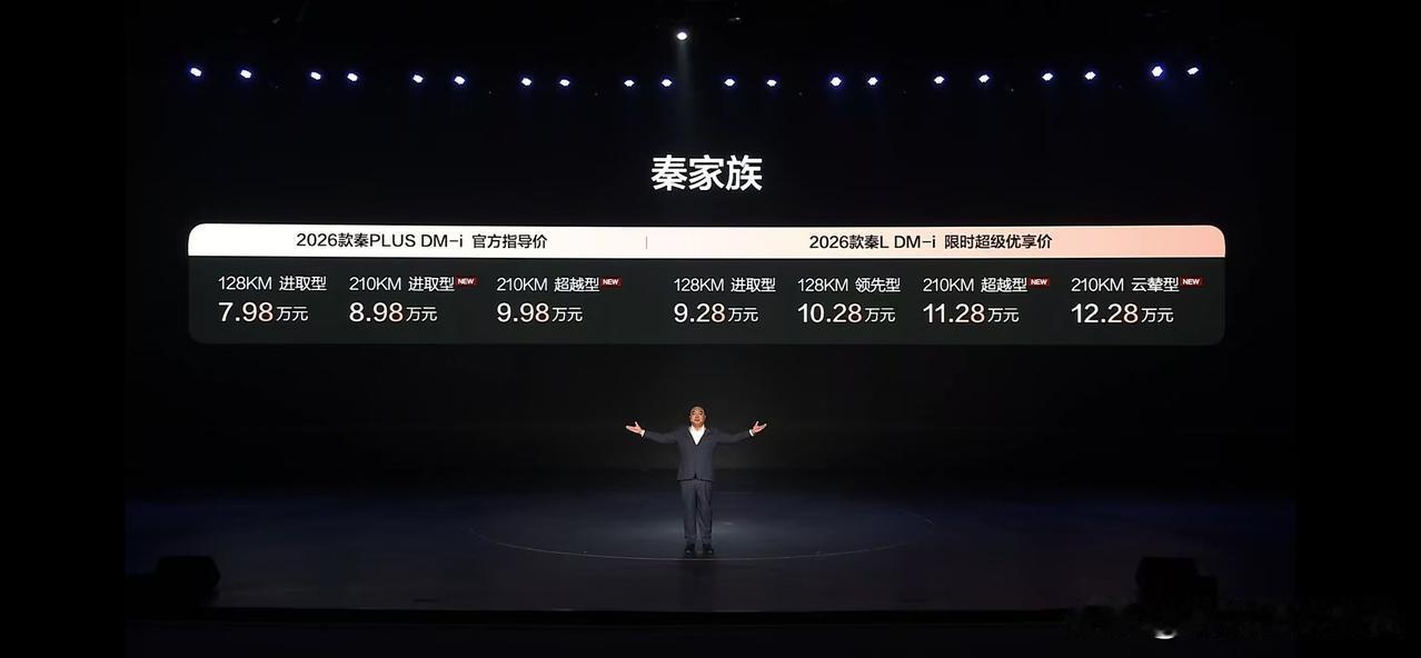 秦plus的210公里长续航的版本只要8.98万[灵光一闪]这还没算补贴[我想静静] 秦L的长续航版本只要11.28万起步 没想到曾经我的一台云辇旗舰豹5如今可以买4台秦plus长续航了[我想静静] 前几天一个朋友给老爸买了一台智驾版秦plusDM-i,只花了6万多,然后说这个车真牛,一箱油400块钱可以跑2000多公里,这台车彻底改变了他们一家对比亚迪的看法[灵光一闪]他们家之前不是宝马6系,就是特斯拉,后来又换了台理想。但是他说怎么都没想到,6万块的比亚迪就能这么好,还有智驾[我想静静]简直颠覆了他对比亚迪的认知