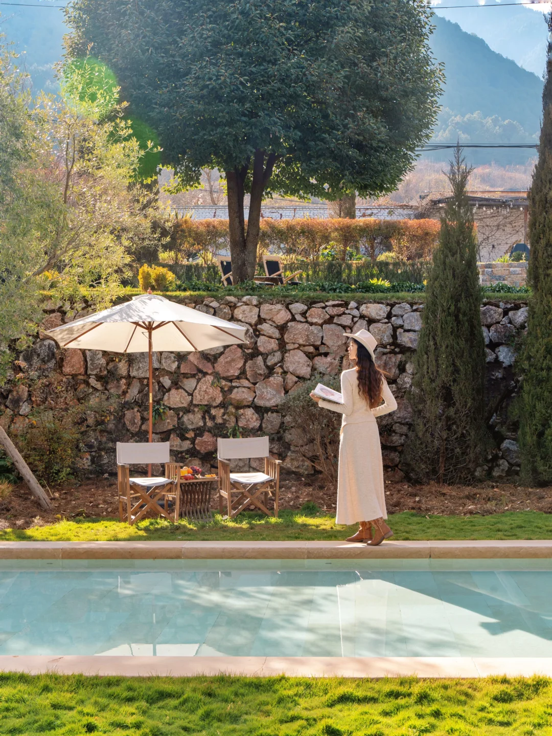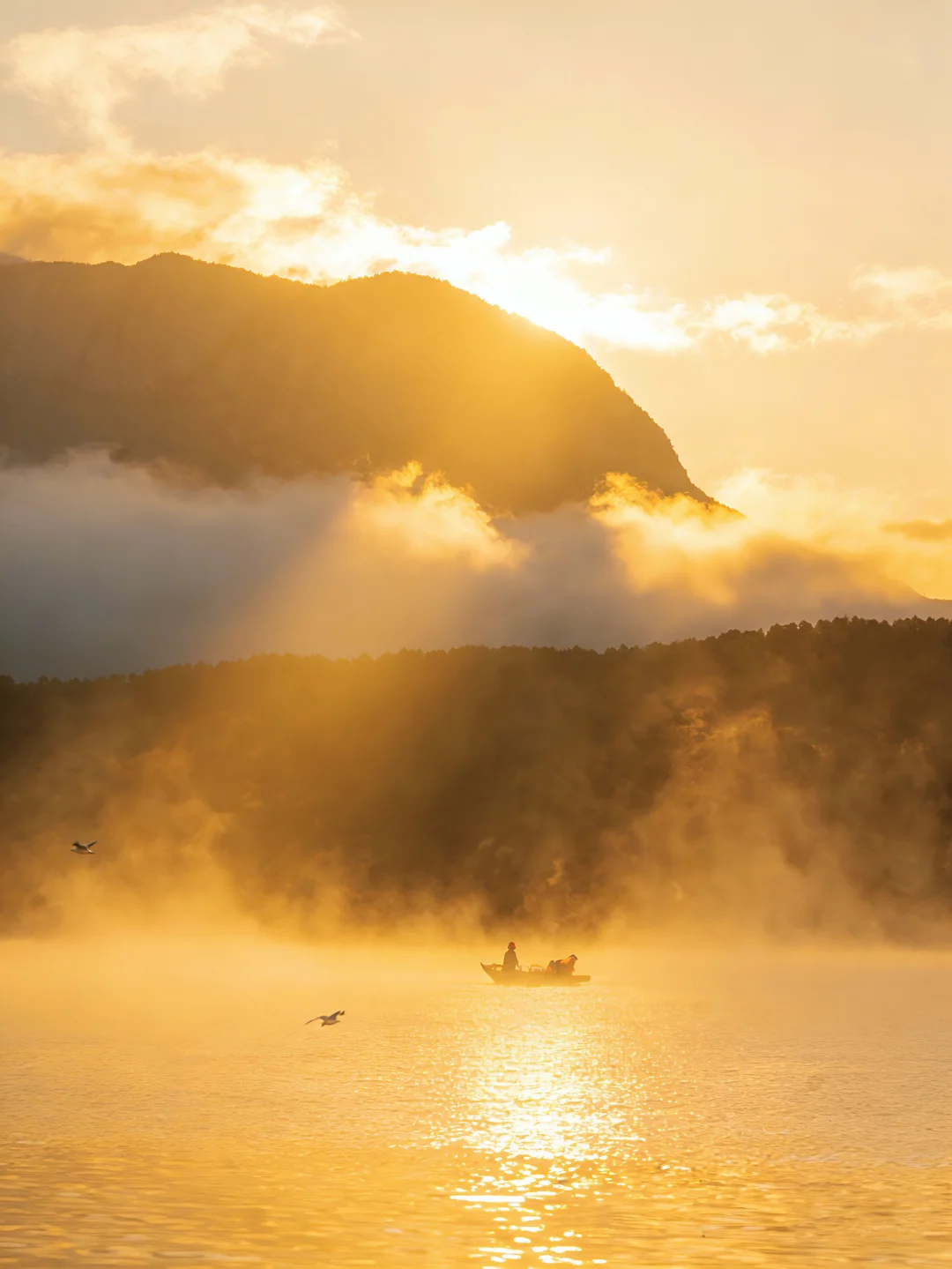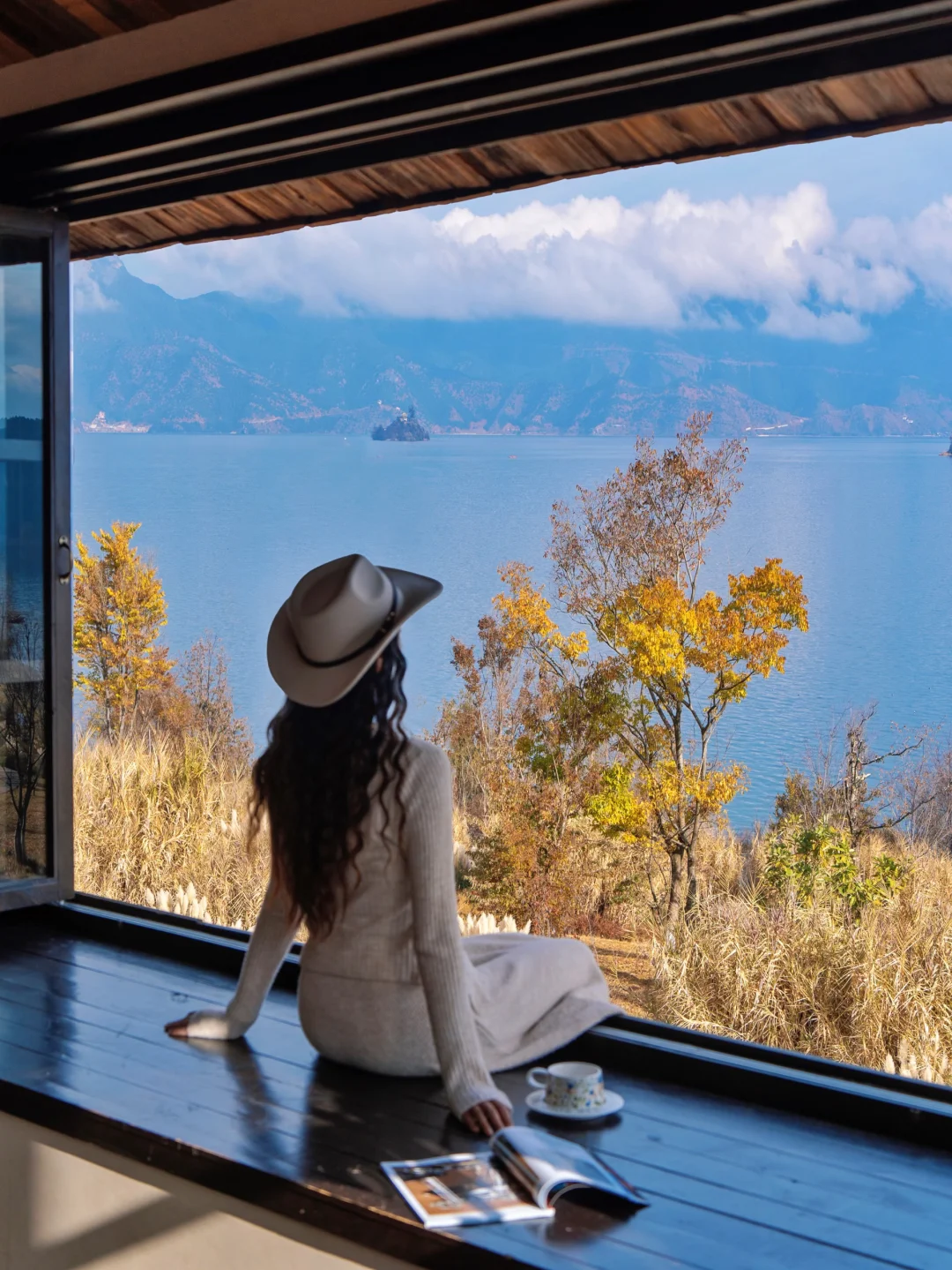 Hi,我叫yy 来淡季的泸沽湖度假 距离丽江3个小时车程 看金色晨雾 喂飞舞海鸥 住南法庄园 像是人间理想 许久都不想离开 三天时间 我好几次坐在这几扇窗前 看云卷云舒倒映在水中 看猪槽船慢悠悠地荡开一圈圈涟漪 时光仿佛也随波流淌 这次来泸沽湖 我住进了大落水旁的泸沽湖玉鹿庭湖景度假庄园 这里不同于我想象中的摩梭风情 而是一座浪漫色彩的南法庄园 午后的阳光倾泻在背后连绵起伏的丘陵上 庄园的外墙被岁月染成了温暖的赤陶色 深吸一口气 空气中弥漫着迷迭香的清冽、柏树的沉静 以及刚刚被阳光烘烤过的干草香气 在石砌泳池边坐下 看斑驳树影在桌面上摇曳 慵懒地来上一份下午茶 在这一瞬 泸沽湖的喧嚣仿佛都远去了 只剩下这静止的美好时光 🚗【泸沽湖旅游路线攻略】 D1丽江-大落水-里务比岛 D2官地花海码头/蒗放码头/普洛码头/爱情码头晨雾-三家村 D3唯汀壹湖景咖啡 (✨看晨雾的话除了爱情码头是要先穿过一片草海,其他都是岸边过去,因为背后有山,所以日出时刻再上船能看到金光洒到晨雾上) 泸沽湖旅游|泸沽湖攻略|丽江旅游 泸沽湖旅行|泸沽湖拍照|丽江旅行