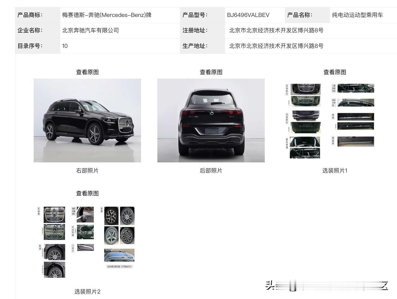 国产的北京奔驰GLC 350L工信部申报,纯电GLC最早是去年9月在海外亮相[思考] 车身尺寸4949/4933×1970/1914×1710/1690mm,轴距3027mm[思考]搭载163+300kW双电机和宁德时代三元锂电池[思考]