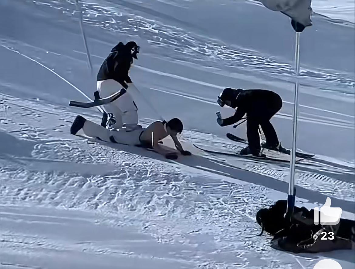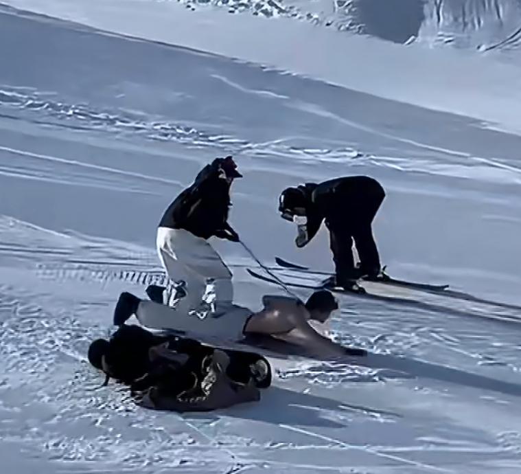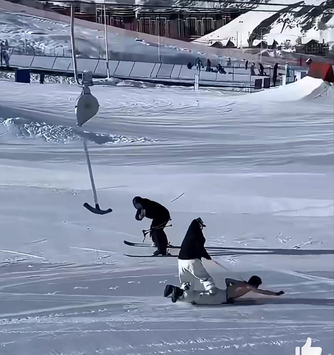 新疆阿勒泰某滑雪场,惊现人体雪橇,危险又无知的举动简直惊掉下巴。只见一男子赤身趴在雪橇上,脖子上拴着绳子,女子站在男子身上,一只手牵着绳子,像牵一条狗一样,向前滑雪,旁边还有人跟拍,不知道这到底是个什么行为艺术。男的贱,女的无知。这样的方式极端不安全,也不雅观。冰雪橇
