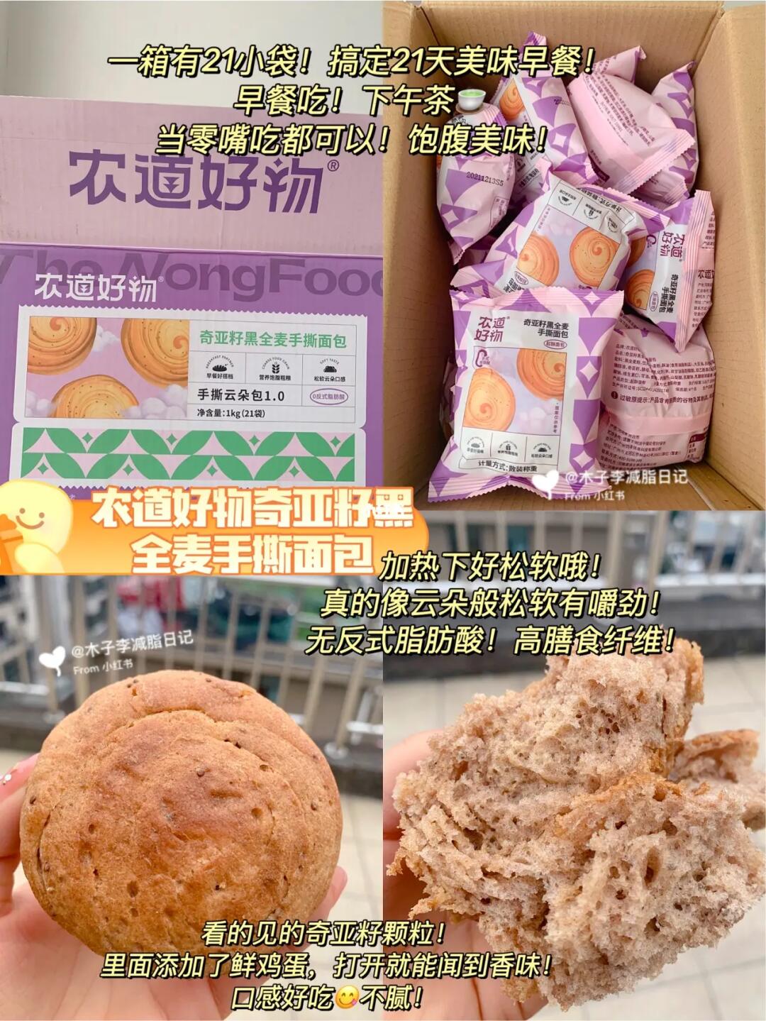 松软如云朵的口感,里面添加了黑全麦和奇亚籽!每口都能嚼到奇亚籽颗粒,高膳食纤维饱腹感强,🈚反式脂肪酸!口感丰富!早餐配牛奶🥛营养饱腹!