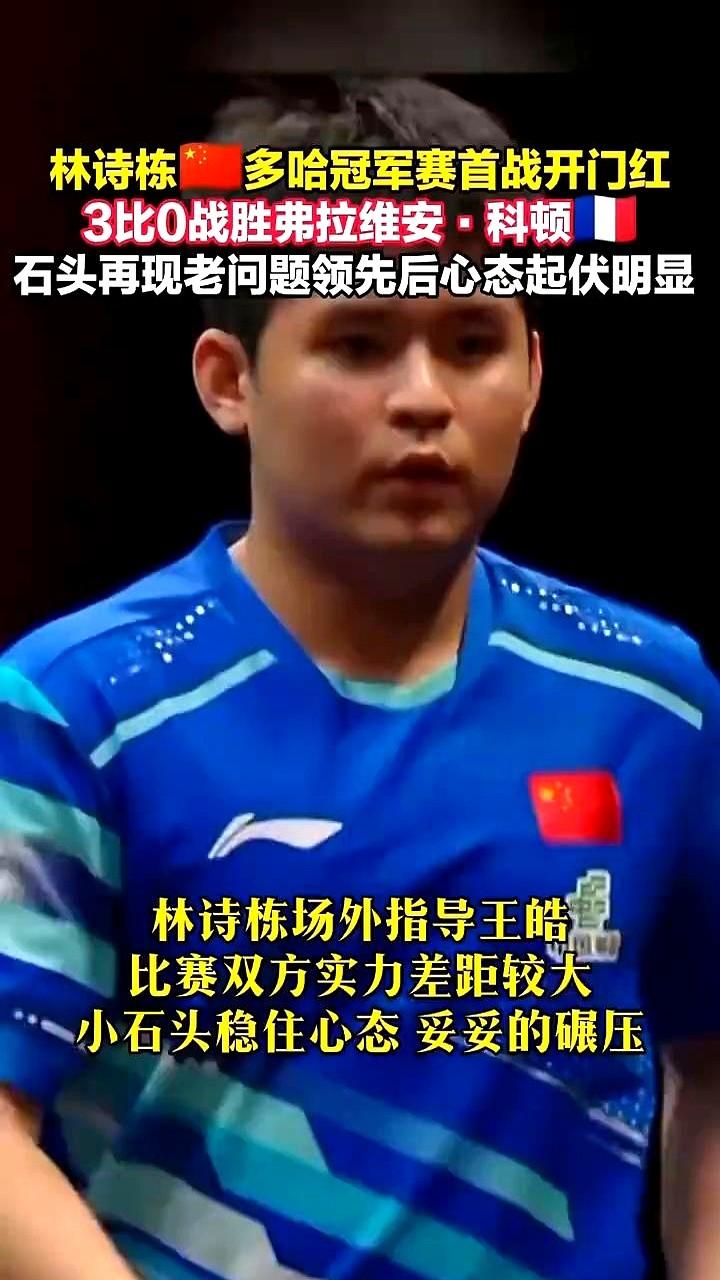 12-10!王皓场边都急了,赶紧叫暂停! 林诗栋这新年首秀,第二局打得人手心冒汗。领先着呢,突然就断电,被对手追着打,心态这老问题又有点冒头…… 还好,皓哥一个暂停给喊醒了。关键分顶住,拿下! 回过神来的“小石头”太猛了。第一局直接轰了个11-3,第三局更是没给机会,一个11-2带走比赛。 这就是多哈冠军赛,男单头号种子的首战,对手是法国的科顿。 赛后小伙子自己也说,2026年第一场,太想赢了,想给男队打出士气! 国乒首日三场外战全胜,开门红!小石头,稳住心态继续冲!