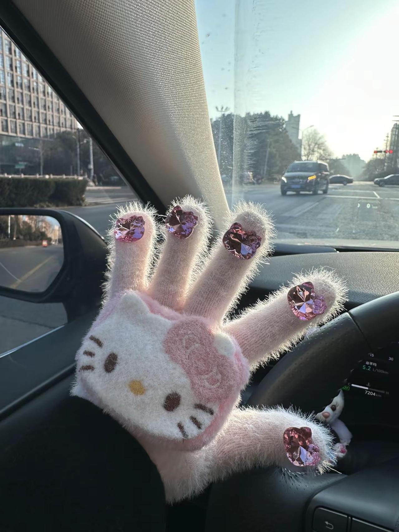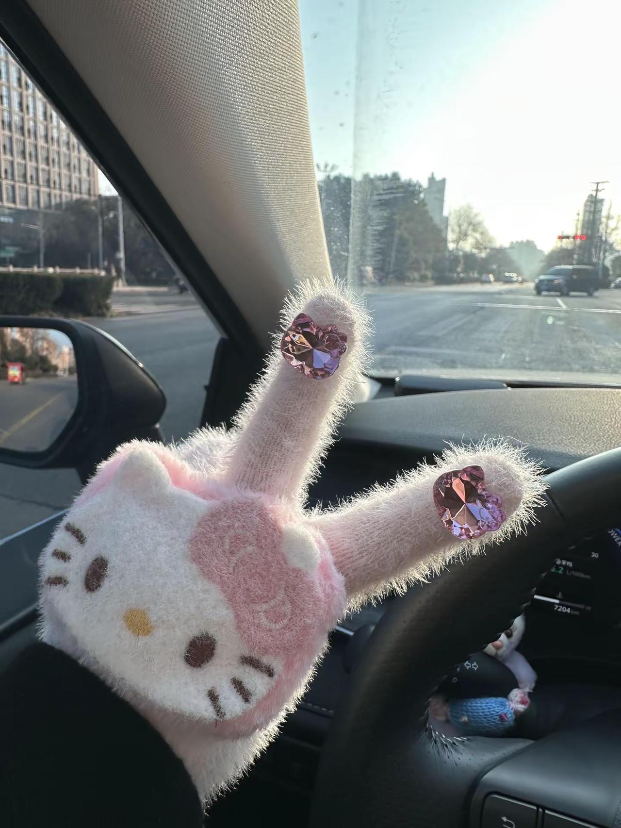 好喜欢我的小手套,咋那么好看呢😍方向盘加热 手套 hellokitty