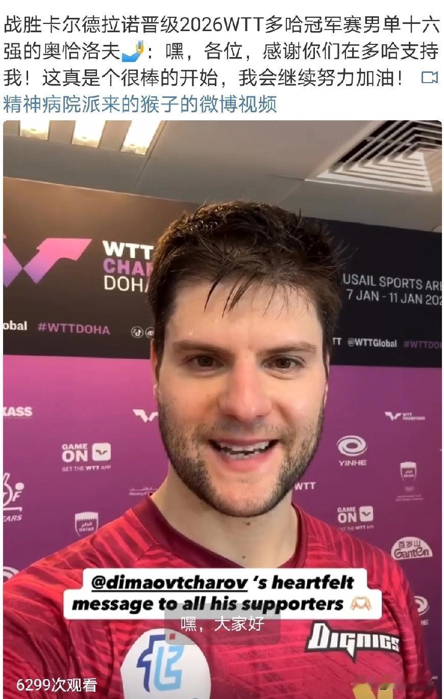 奥恰是蹲着发球的,每次看奥恰和雨果打球,俩人像是在躲猫猫,太逗了。不过昨天裁判还判分了,奥恰回抛,冠军赛竟然没有鹰眼。所以王曼昱和大藤沙月的比赛时,周雨委婉的说了王曼昱看不清大藤沙月的发球,判断错了,也是说没有鹰眼。 WTT冠军赛确实是容易爆冷的,没想到这次雨果没过了奥恰这一关,高桥首轮比赛也输了,大家说这两口子可以提前备战多哈球星挑战赛了,雨果近期的状态确实不怎么样。 奥恰是3-2赢了雨果,晋级男单16强,赢下比赛后的奥恰很开心,其实奥恰也是很有实力的,只不过他打不过马龙,他在职业生涯里唯一的遗憾就是没能赢马龙一次吧。赛后奥恰还发动态了,他说:“嘿,各位,感谢你们在多哈支持我,这真是个很棒的开始,我会继续努力加油!”
