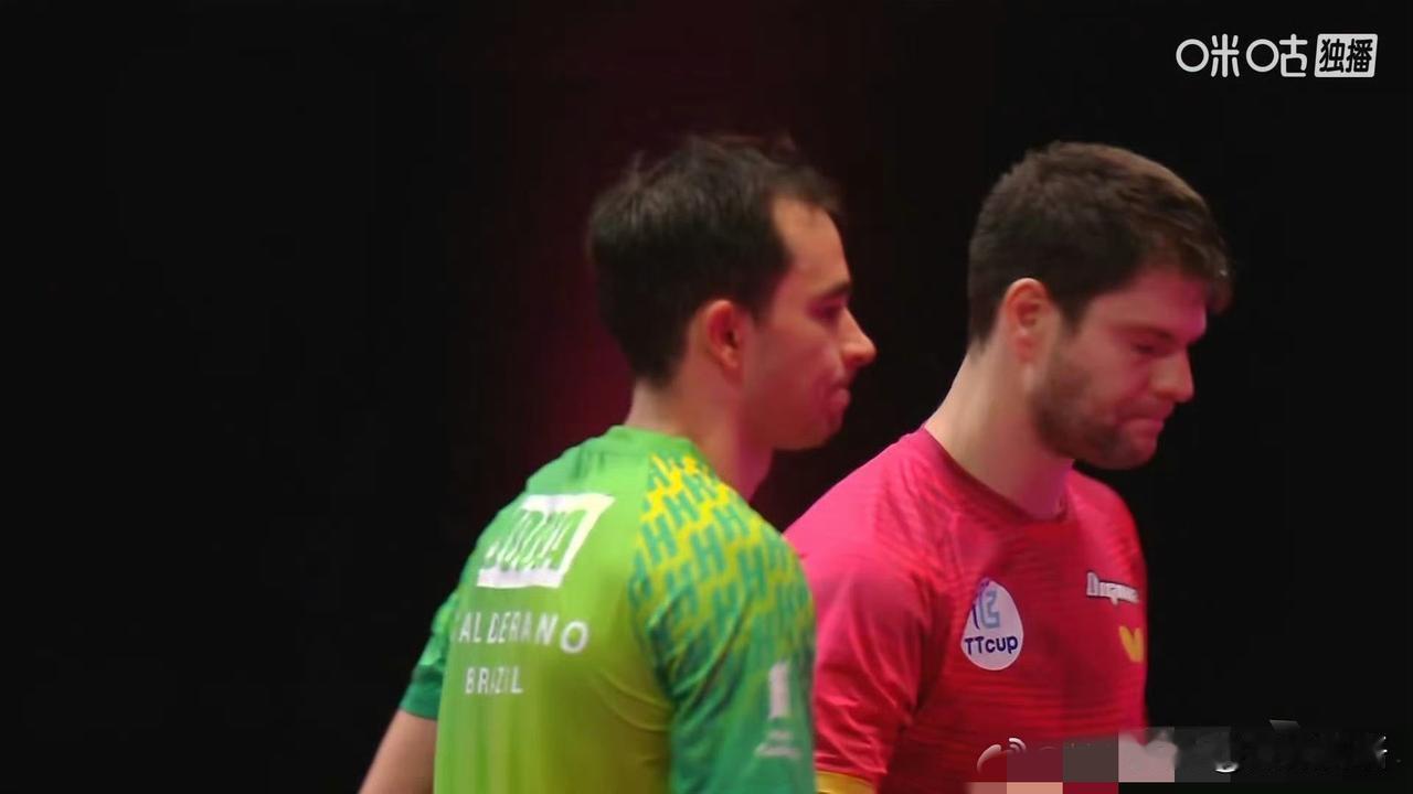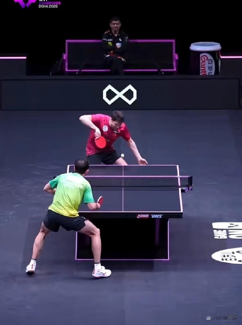 奥恰是蹲着发球的,每次看奥恰和雨果打球,俩人像是在躲猫猫,太逗了。不过昨天裁判还