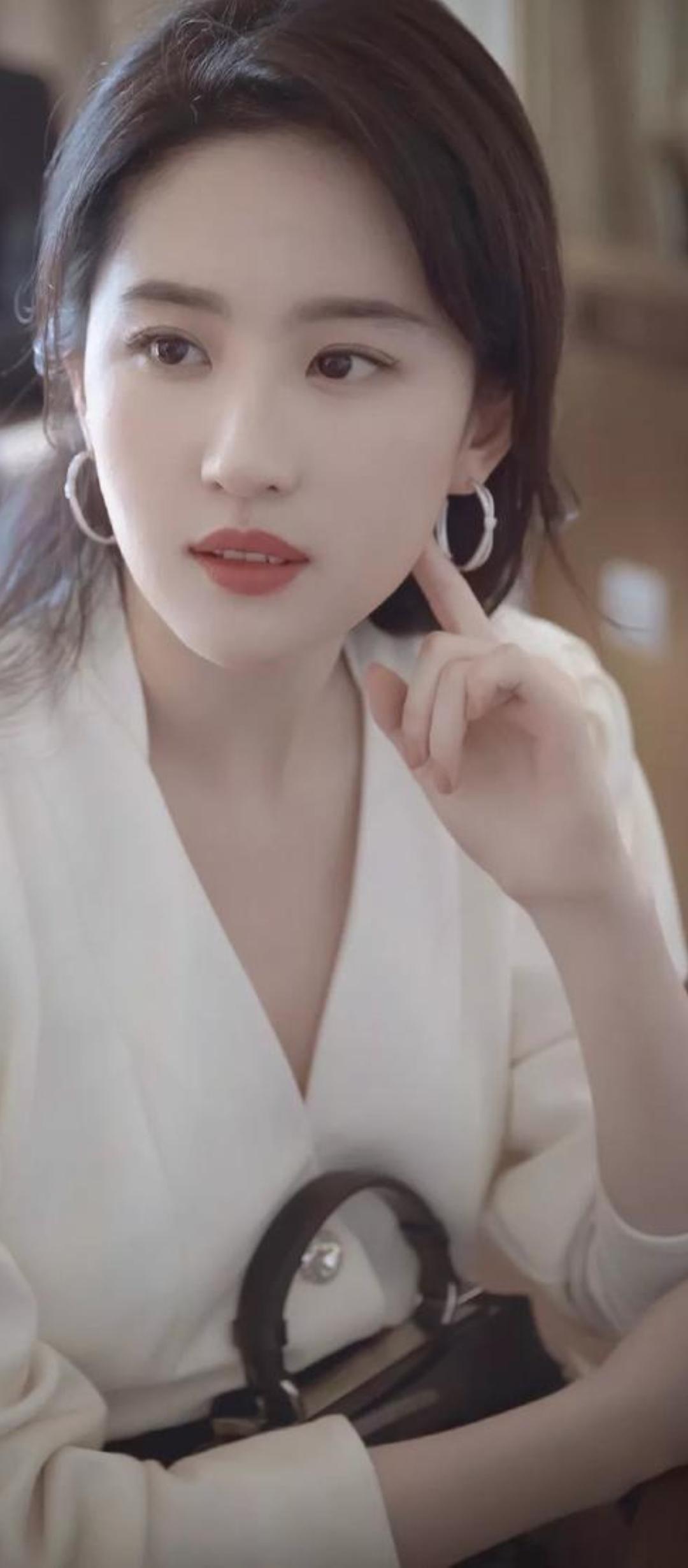 优雅气质,白衣飘飘,精致妆容,自信微笑。