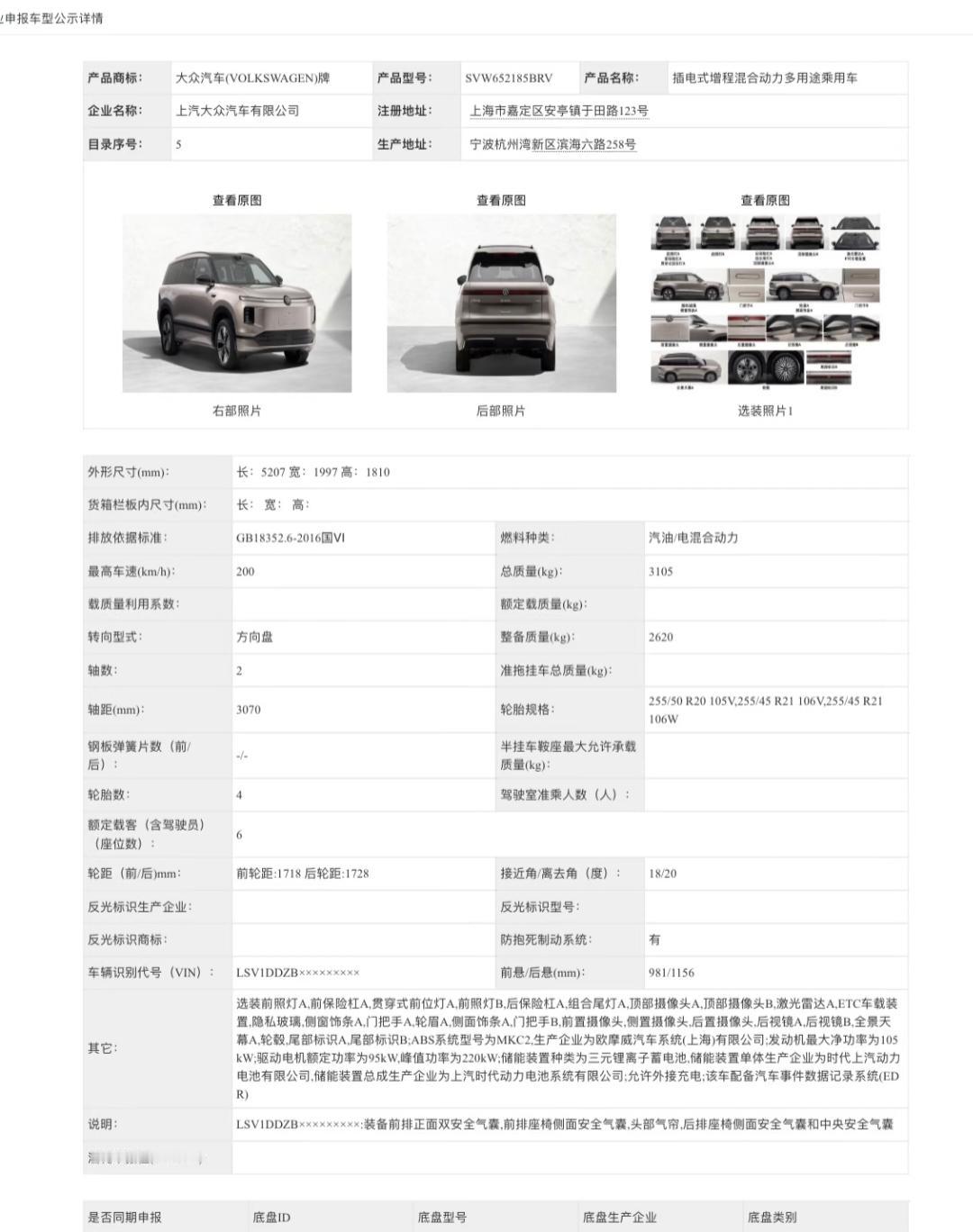 大众ID.ERA 9X申报图曝光 上汽大众ID.ERA 9X申报图亮相,这车是大众集团首款9系旗舰,也是ID.ERA新能源序列首款量产车,定位全尺寸增程式SUV,把德系品质和中国智能科技融合。 外观上延续概念车风格。前脸贯穿式发光车标+分体式大灯,车顶有激光雷达。 侧面悬浮式车顶+全黑化ABCD柱,车身尺寸5207/1997/1810mm,轴距3070mm。尾部,贯穿式尾灯+可点亮尾标。 动力上,用的1.5T增程器+宁德时代65.2度电池,CLTC纯电续航超400km。增程器基于EA211发动机优化,体积小、效能高、噪音低。 底盘上,双叉臂前悬+五连杆后悬+双腔空气悬架+后轮转向,兼顾了操控和舒适。 配置上,激光雷达+多传感器,有全场景导航辅助驾驶,疑似标配6座零重力座椅。 具体上市时间官方暂未正式公布,预计26年 年内。 总的来看,大众ID.ERA 9X的优势是在 老牌车企的成熟功底+国内的智能化配置,5207mm车长+3070mm轴距的大空间,1.5T增程器基于EA211发动机优化,技术成熟。双叉臂前悬+双腔空气悬架+后轮转向的底盘配置,既有操控也有舒适。外观设计既有品牌辨识度也有科技感,无明显槽点。 但增程式技术路线落后,2025年后主流车企已普及800V高压超充,增程式的“续航焦虑解决方案”卖点不如之前的市场 。 申报信息中没提到高阶智驾芯片、旗舰级车机系统等核心配置。 产品定位上,既想靠“稳重设计”留住燃油车用户,又想用新元素吸引年轻群体。 整体来看,它是一台不错的实用型旗舰SUV,但缺乏一些核心差异化竞争力。