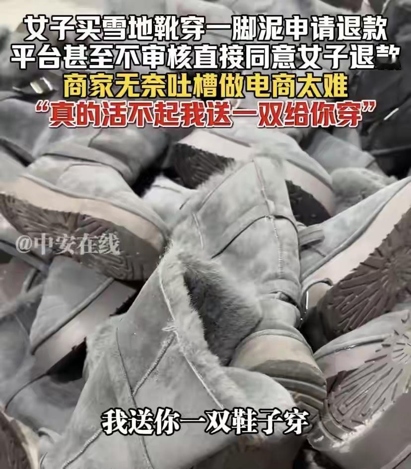 女子穿脏雪地靴申请无理退货,平台竟全额退款!商家怒了:踩了一脚泥,还是想白拿? (素材来自网络) 在这个“退货无底线”的时代,消费者的“任性”行为正逐渐成为行业难题。近日,一起关于雪地靴退货的事件再次引发热议:一名女子购买雪地靴后,穿过多次,鞋子变得脏兮兮,甚至踩了一脚泥巴,却仍然成功申请了全额退款。令人震惊的是,平台竟然“妥协”了,商家怒斥:这还算退货吗?! 事情的起因很简单,但背后折射出的却是行业的巨大隐忧。事情发生在山东,一位女消费者在某知名电商平台购买了一双深灰色的雪地靴,靴子长度到膝盖,原本以为冬天穿着保暖,没想到穿着穿着就变成了“脏鞋”。几天后,她决定退货,申请退款。 商家在收到退货请求后,第一时间进行了检查。结果让人目瞪口呆:鞋子表面满是灰尘和泥巴,鞋底粘着一大块泥巴,甚至可以用“黏在一起”来形容。鞋底的防滑纹路也明显磨损,显然不是刚买来的样子。更令人震惊的是,鞋子反过来,泥巴还在鞋底上“坚挺”着,像口香糖一样黏着。 店主在拆包裹时,看到这一幕,顿时气得火冒三丈。她愤怒地表示:“拆开包裹的瞬间,我差点想吐!这双鞋子明显是穿过多次,踩了泥巴,脏得不行,怎么还能退货?难道穿过还想退?我看这是故意脏了再退货吧!” 然而,令人不可思议的是,买家不仅没有认错,反而在平台上坚持退货,并申请了平台介入。平台方面,在没有充分核实的情况下,竟然“默认”了退货请求,最终商家不得不被迫全额退款。 这起事件引发了众多网友的热议。有人怒斥买家的“厚颜无耻”,也有人质疑平台的“偏袒”。有人评论:“这还算退货吗?鞋子都踩了泥巴,穿了几天,怎么还能说没穿过?这不是占便宜吗?”还有人说:“平台规则变成了白嫖的工具,商家受害,消费者任性,谁来维护公平?” 事实上,类似的“无理退货”事件已经屡见不鲜。去年,一些消费者将穿了几天的羽绒服申请退货,理由竟然是“觉得不暖和”。而现在,鞋子也成了“试穿”工具,踩了泥巴、穿了多次,仍然要退货。这种行为,不仅损害了商家的权益,也扭曲了“诚信交易”的底线。 为什么会出现这样的情况?根本原因在于平台的“规则漏洞”。一些平台为了追求流量和销量,放宽了退货政策,甚至默认“无理由退货”。而一些消费者也开始利用这一规则“变相占便宜”。他们明知道商品已经被穿过、弄脏,却仍然申请退货,甚至“踩一脚泥巴”作为“证据”。 这不仅仅是个别事件,而是行业的普遍现象。商家们苦不堪言:鞋子一旦穿出去,二次销售几乎不可能;衣服穿过一次,也难以保证干净如新。而平台的“包容”,反而助长了这种不良风气,让“占便宜”成为某些消费者的“习惯”。 那么,如何解决这个问题?首先,平台必须加强审核机制。对于明显穿过、弄脏的商品,要有严格的判断标准,不能一味退货。其次,商家也要明确退货规则,提前告知消费者“穿过的商品不可退”。最后,消费者也应当遵守诚信原则,不要为了图一时之快,破坏行业的正常秩序。 这起雪地靴事件,无疑是行业的一面镜子。它告诉我们:规则不能成为“白嫖”的工具,诚信才是市场的生命线。平台要坚守底线,不能为了流量和销量,放任“任性退货”的泛滥。商家要保护自己的权益,不被无理取闹的消费者侵害。而消费者,更应尊重商品的价值和商家的劳动成果。 未来,希望平台能够加强监管,完善退货政策,杜绝“踩泥巴退货”的恶劣行为。也希望消费者能树立正确的消费观念,诚信交易,共同维护一个公平、健康的市场环境。毕竟,诚信是市场的基石,只有守住底线,行业才能健康发展。 这起雪地靴退货事件,再次提醒我们:不要让“规则漏洞”成为“白嫖帮凶”。每个人都应当成为诚信的守护者,而不是占便宜的“黑心人”。只有这样,我们的市场才能更加繁荣,我们的生活才能更加美好。 在这个“退货无底线”的时代,个别消费者的“任性”行为严重扰乱市场秩序。平台应加强审核,商家应明确规则,消费者应守住诚信底线。只有共同努力,才能让市场变得更加公平、透明,真正实现“诚信交易,共赢未来”!羽绒服退款 奇葩退货