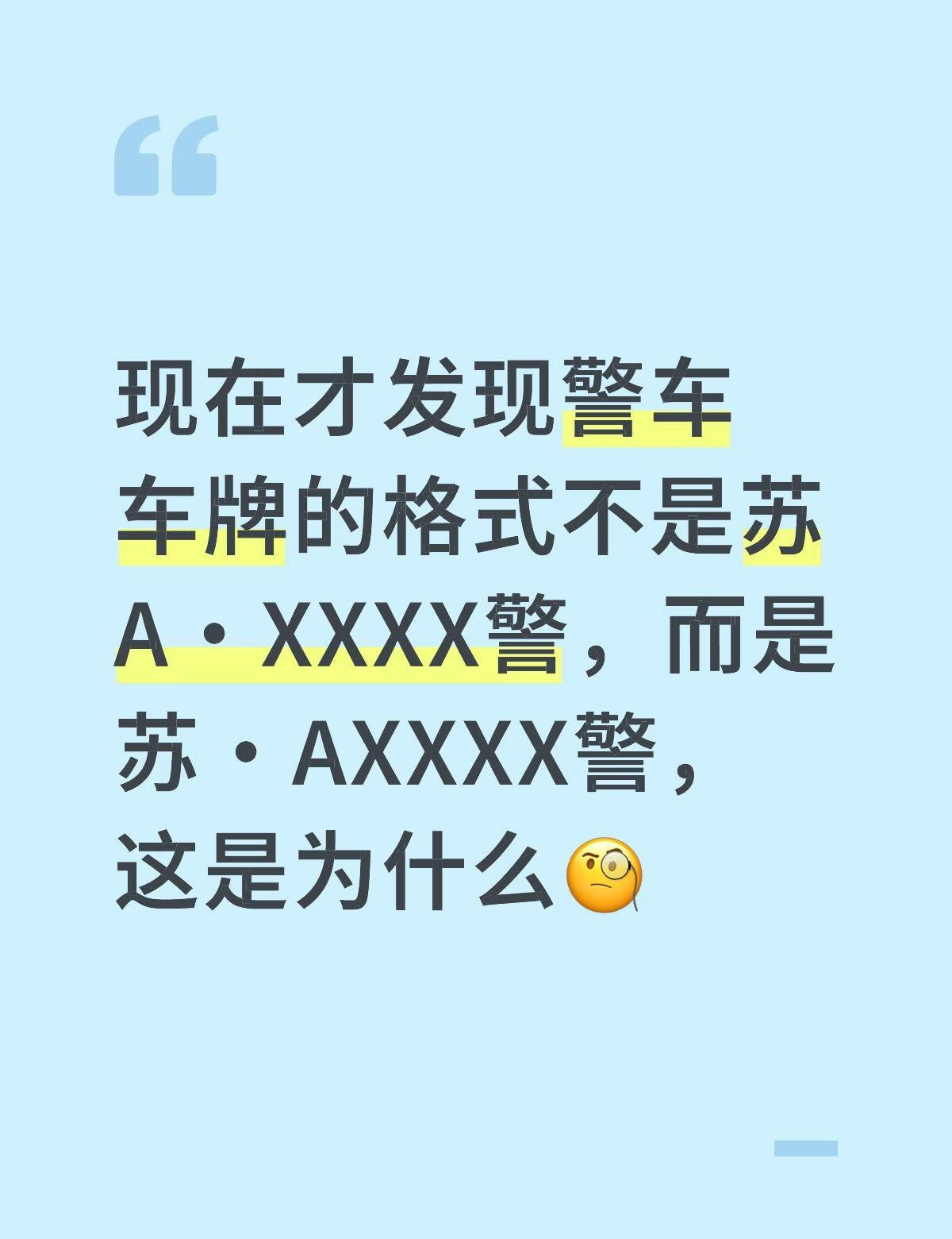 现在才发现警车车牌的格式不是苏A·XXXX警,而是苏·AXXXX警,这是为什么🧐