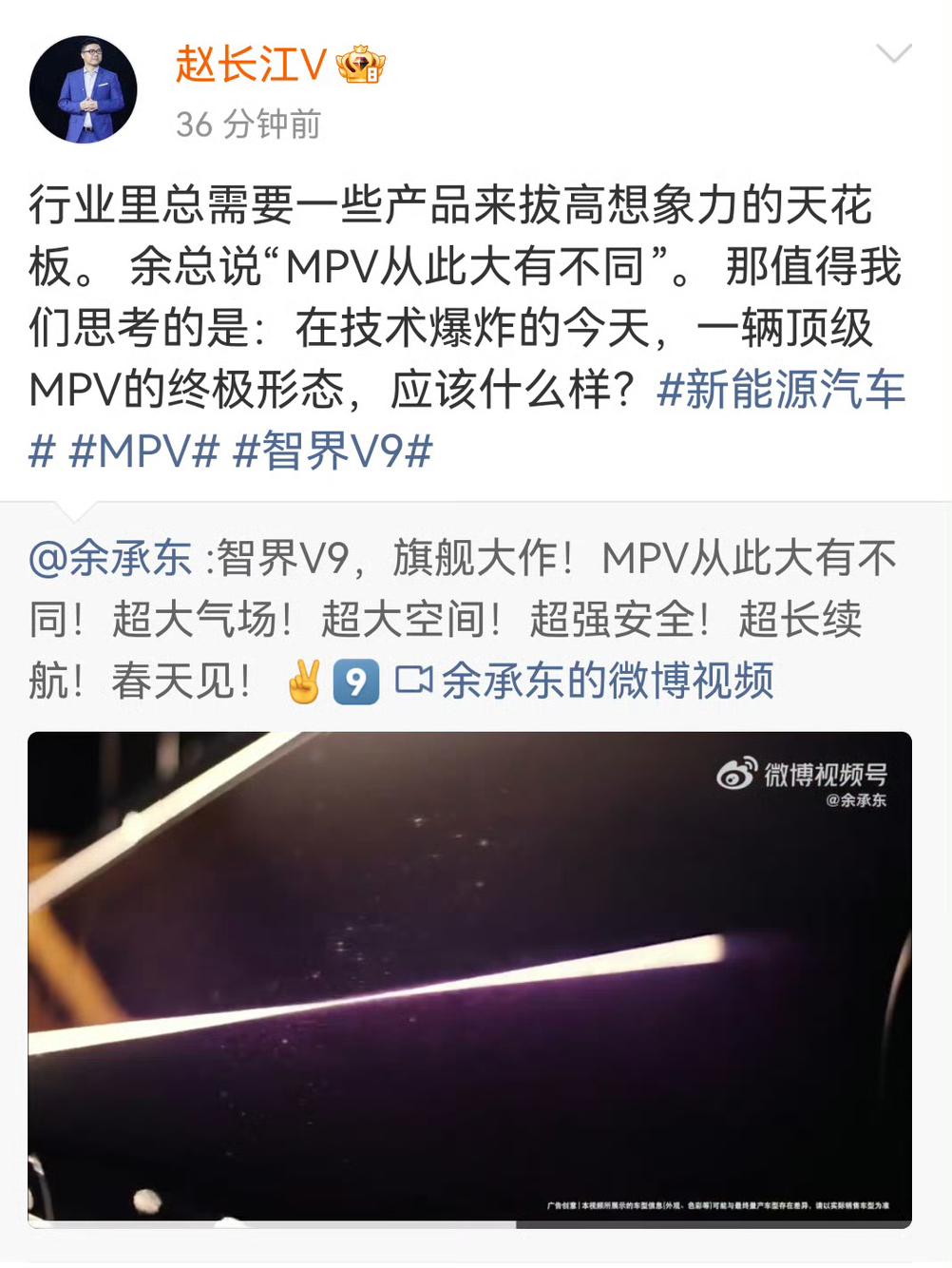 赵长江官宣去了智界汽车!智界刚好有一款MPV即将上市! 作为一个非常有能力的汽车营销负责人,赵长江的去向一直引人注目,这一次终于确定了下来,他去负责智界品牌了。 智界品牌确实缺一个非常有能力的营销负责人,智界品牌形成独立的事业部门之后发展越来越好,奇瑞也将更多的资源投入到这个新品牌。 各位是怎么看的?欢迎评论区留言。