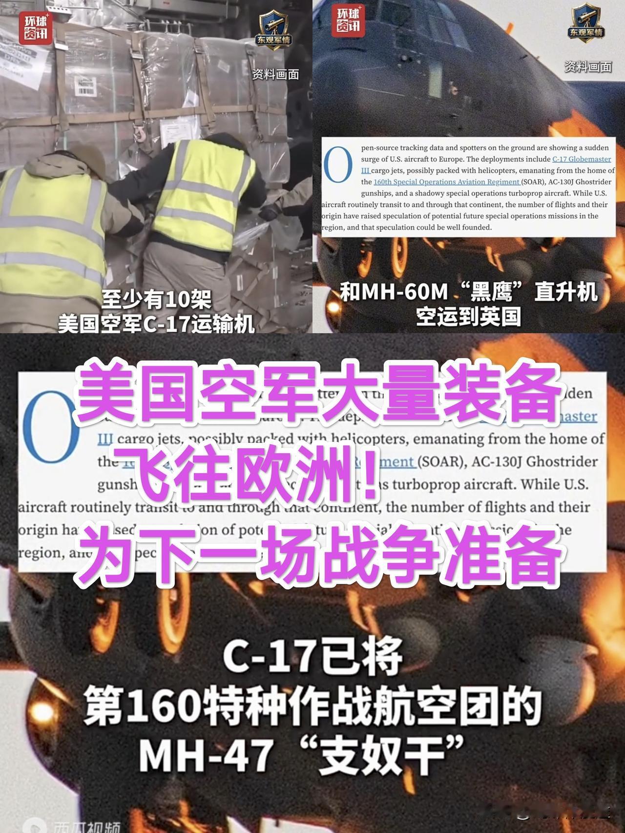美空军飞机大量飞往欧洲 与中东局势有关!还是与中国有关呢? 1月8日傍晚,伊朗开始实施全国性网络管制,互联网被掐断了。互联网现在是最基本的基础设施,极端措施的背后,也可见伊朗当下事态的严重性。 近日,大批美军飞机突然飞往欧洲。数据显示,1月3日至少有10架美国空军的C17运输机从美国飞往欧洲。其中至少4架C17是从肯塔基州的坎贝尔堡起飞,C17已经将D160特种作战航空团的MH 47支奴干,和MH 60M黑鹰直升机空运到了英国, 美军在欧洲部署大量的空军力量 如果不是为了参加北约组织的联合演习,那就是在谋划一次新的海外作战行动或者就是是中东地区。 1月4日,伊朗警察部队司令表示,参加骚乱被捕人员在供述中称,他们收受了美元资金。 这表明这场骚乱是有背后的支持者在拱火。 哈梅内伊称滥用抗议活动,意图破坏国家安全,并引发骚乱的行径是绝对不可接受的,必须认清敌人的所作所为。 1 月 3 日 特朗普在社交媒体上表示,将就伊朗骚乱事件进行干涉,称美国“已做好准备”。 1 月 8 日 美国记者赫什表示:美国在委内瑞拉的行动针对的是对华石油供应问题,据他所获得的信息来看,下一个目标可能就是伊朗,这又是中国另一个主要石油供应国! 所以结合美国在委内瑞拉的军事行动,再到美空军飞往洲欧 再到伊朗骚乱背后的支持者 最后到特朗普称对伊朗准备好了 ,这一系列的操作来看,美国就是针中国! 如果一切成真,只能说美国死磕中国一刻都没有放松,而是不断采取不同的举动,从外围打击中国,以达到阻止中国发展之目的!