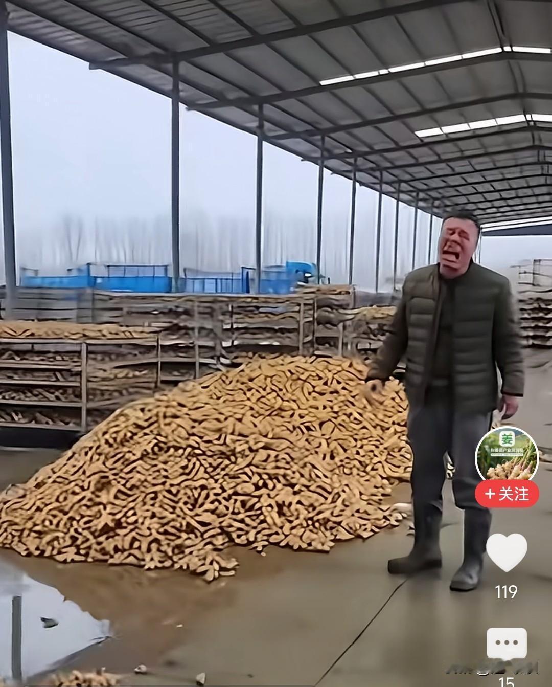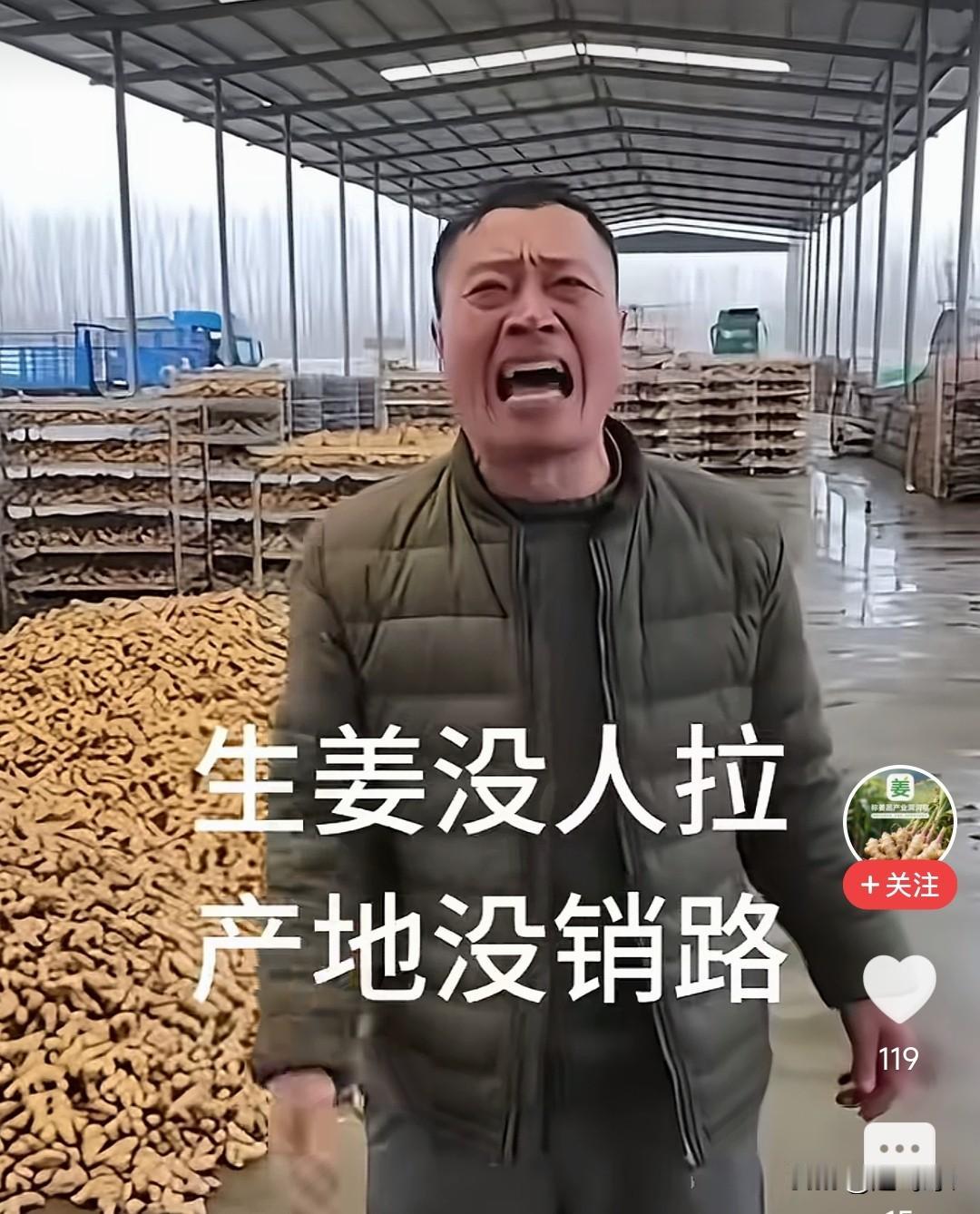 今年怎么回事,这么好的生姜也没人拉了,看把生姜产地大哥哭的,这个季节生姜应该好卖。 今年生姜销路为什么这么差,这产地生姜堆的到处都是,今年是什么情况了。 超市里生姜都七八块钱一斤,为什么没车去拉呢,多去几辆挂车就拉走了,只有卖出去了姜农才能挣钱,这样放着也不行,快过年了,全国各地一起消费的时候到了,这点姜不算多吧。挂在网上几天就卖出去了,不要哭了。