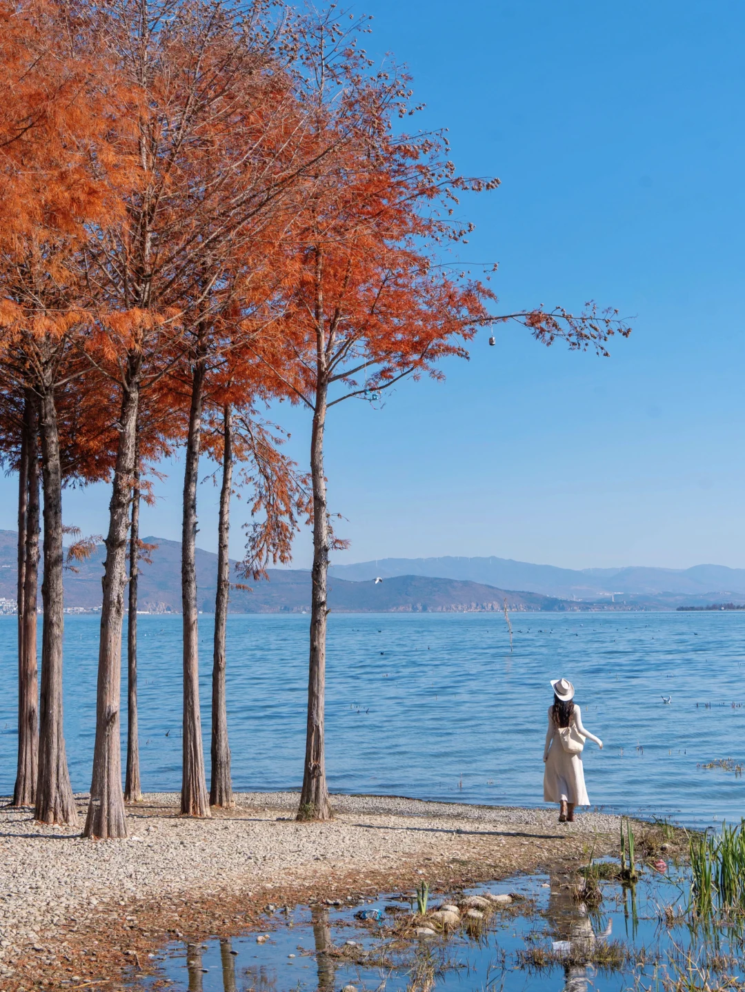 洱海中有四棵红杉,红色和蓝色的对比拍照好看~