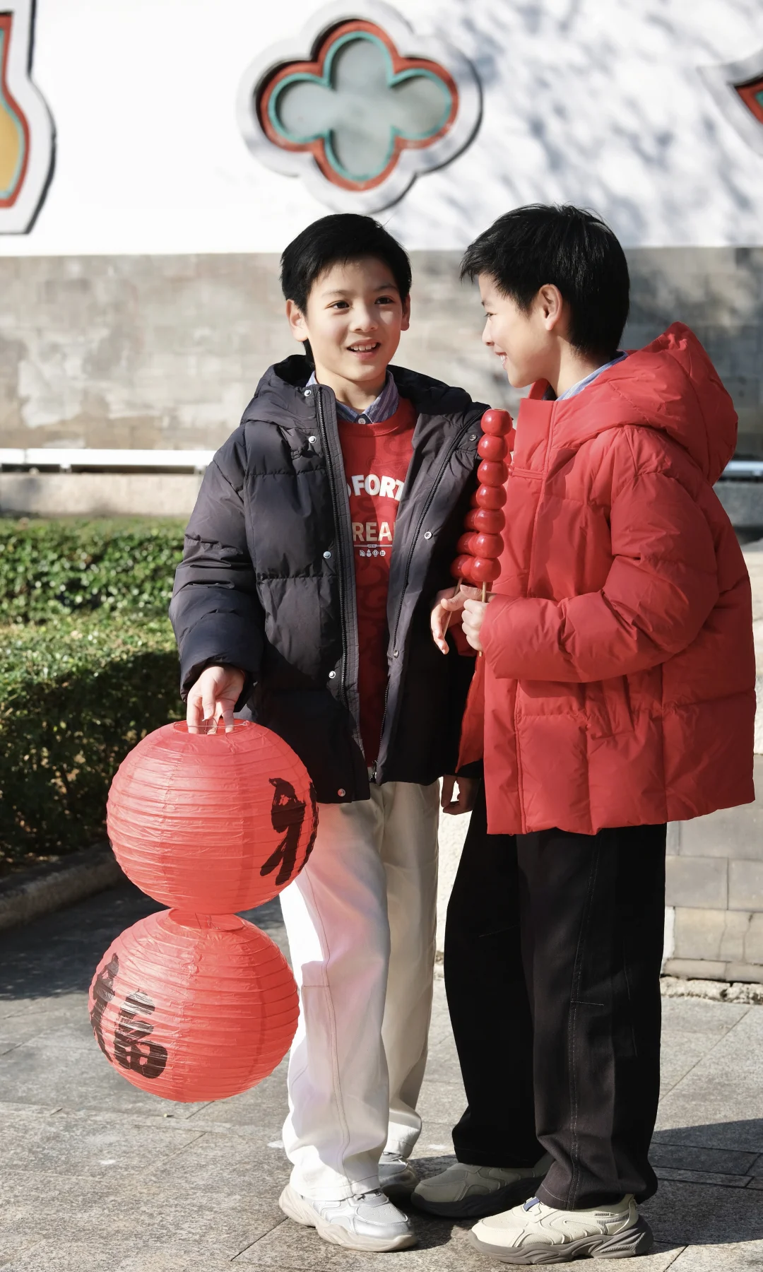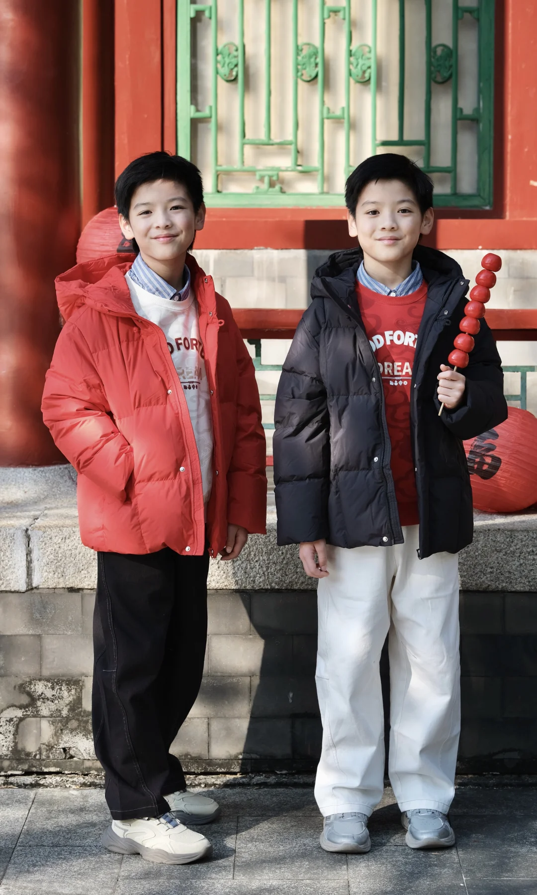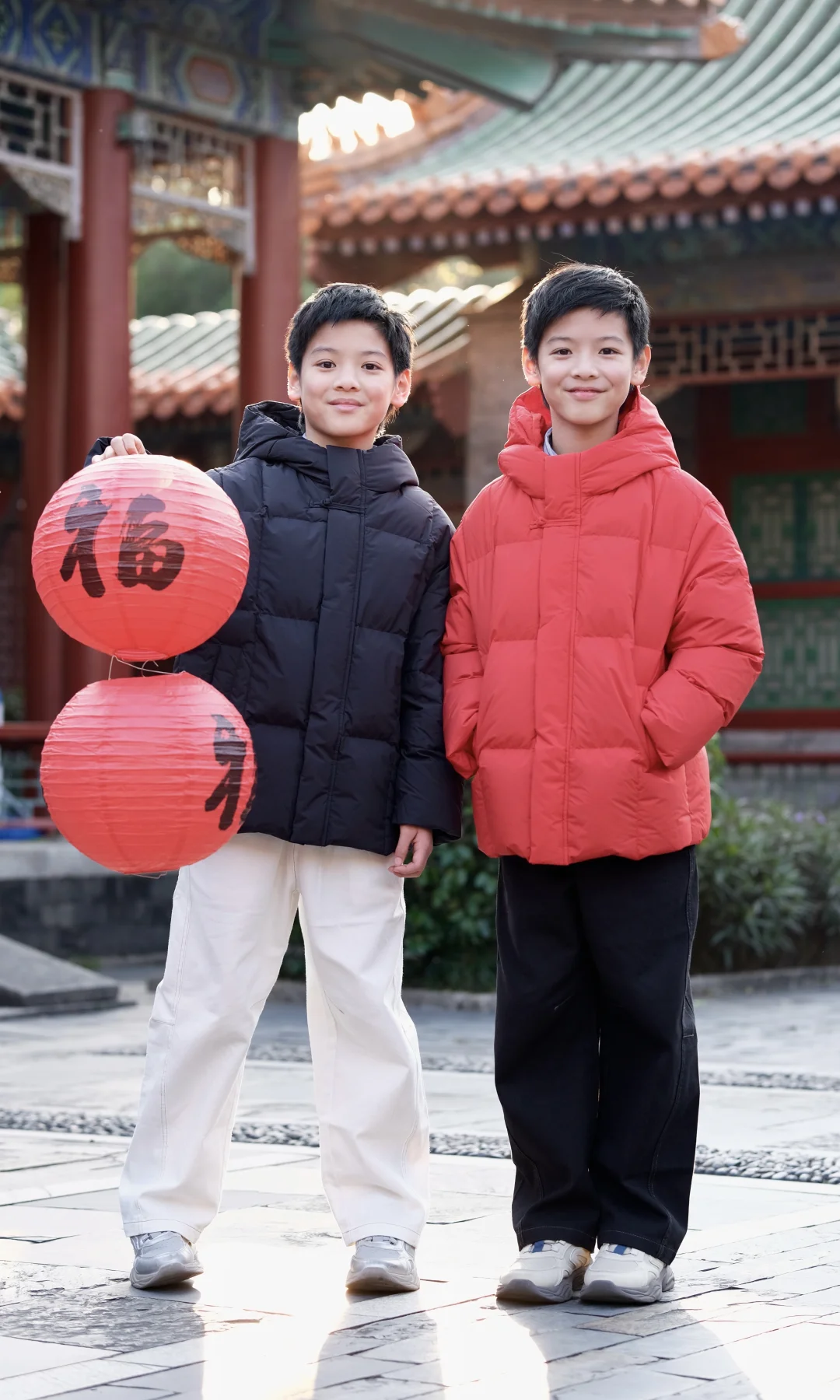 年战袍当然是国风最有仪式感! 拿着春联、提着福字灯笼在红墙下拍照, 传统元素和孩子的朝气撞在一起,年味瞬间拉满💯 红白配黑白色系,拍照巨出片! 过年给娃这么穿,走亲访友既有国风氛围感, 又不怕冻着,完美拿捏新年仪式感~