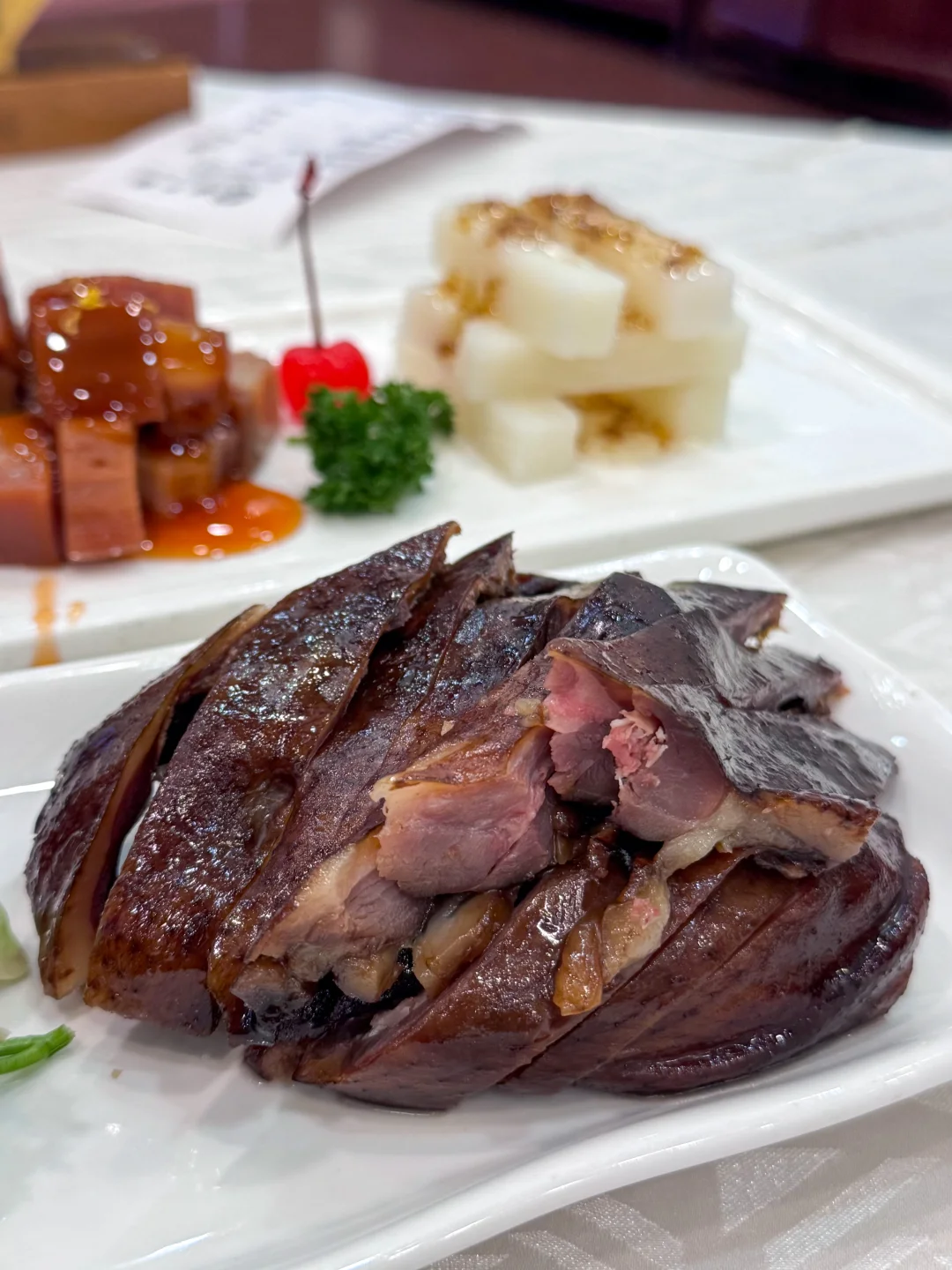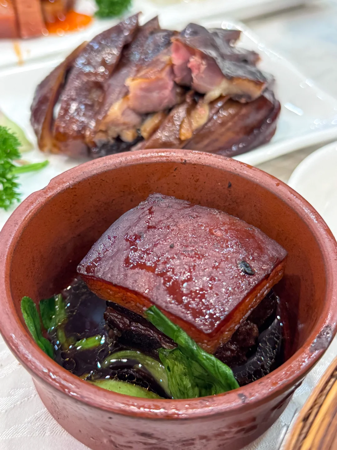😌最先上的菜是杭州酱鸭,这个也是留香时间最长的,中午吃的酱鸭,晚上十点打嗝还是酱鸭的油腻味~~~