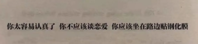 你不应该谈恋爱, 你应该坐在路边贴钢化膜