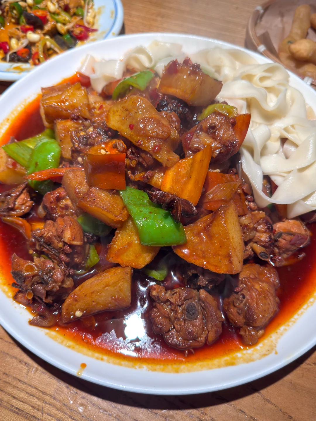 随机馋哭杭州的河南网友。 麻酱面筋 小油条 菜蟒 蒸菜 焖面 饺子 大盘鸡 杭州西湖「中原一大碗」
