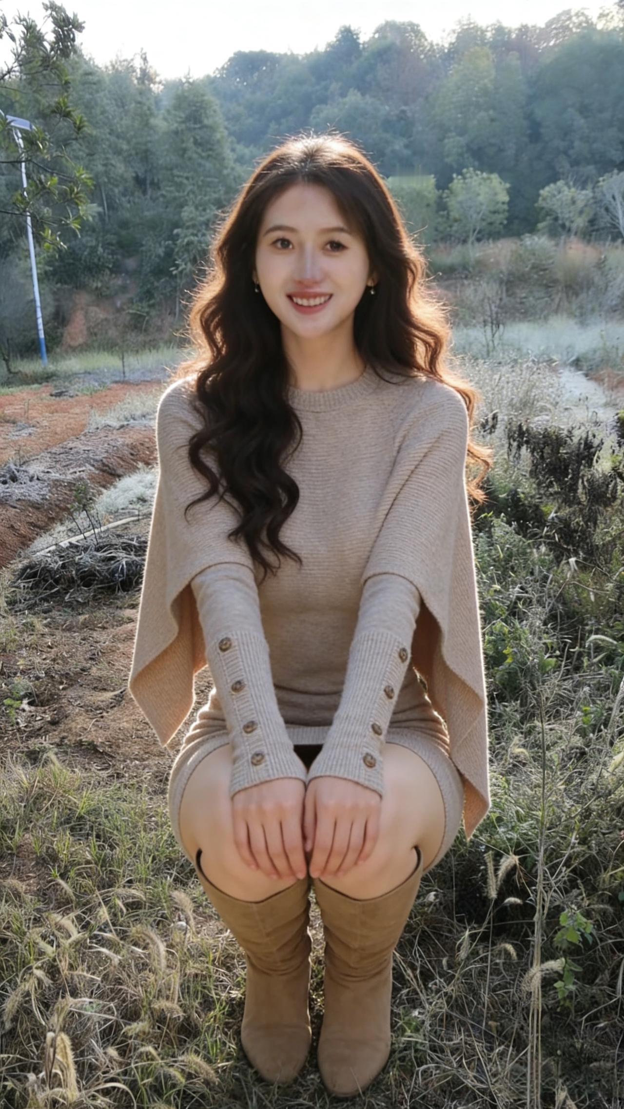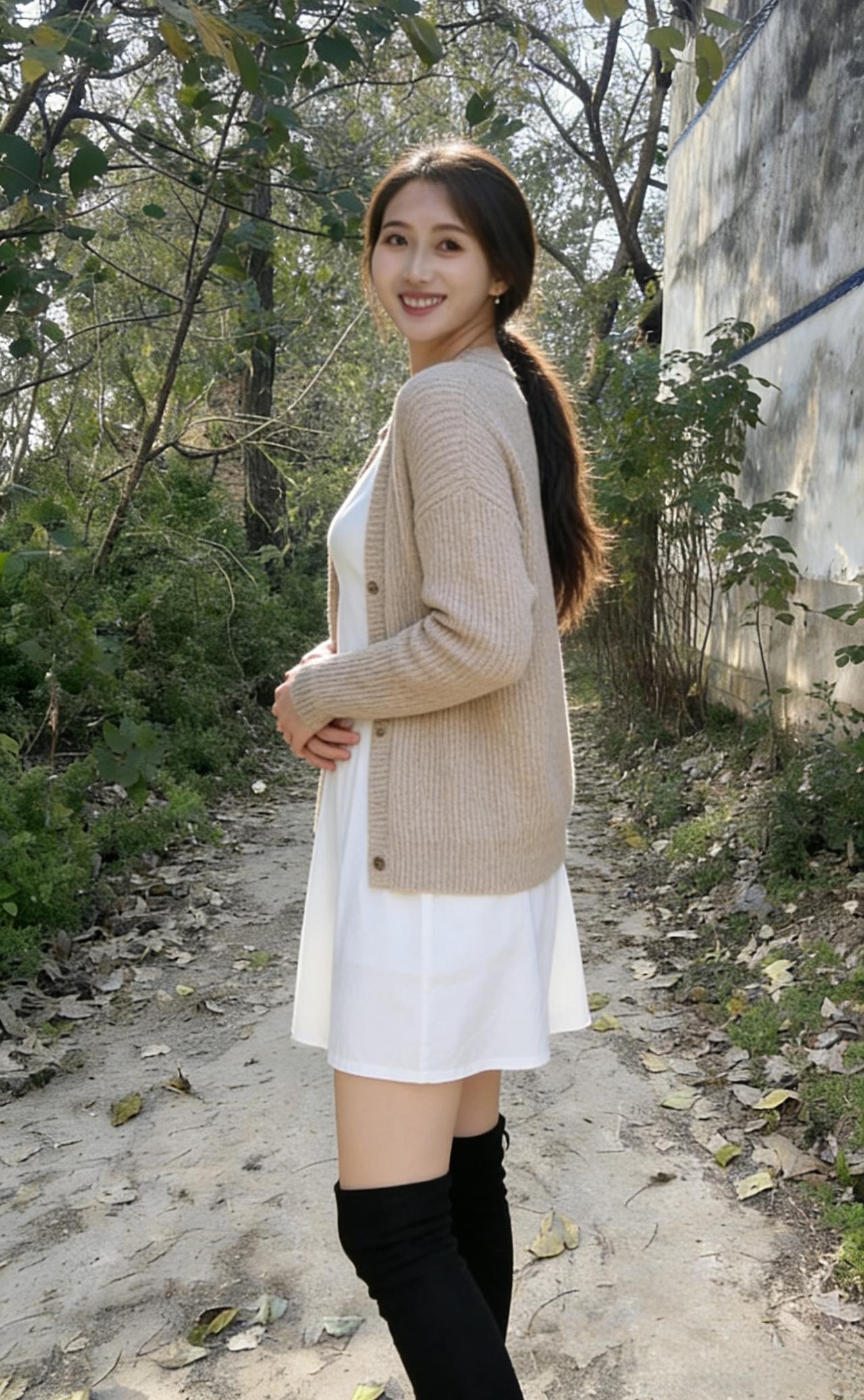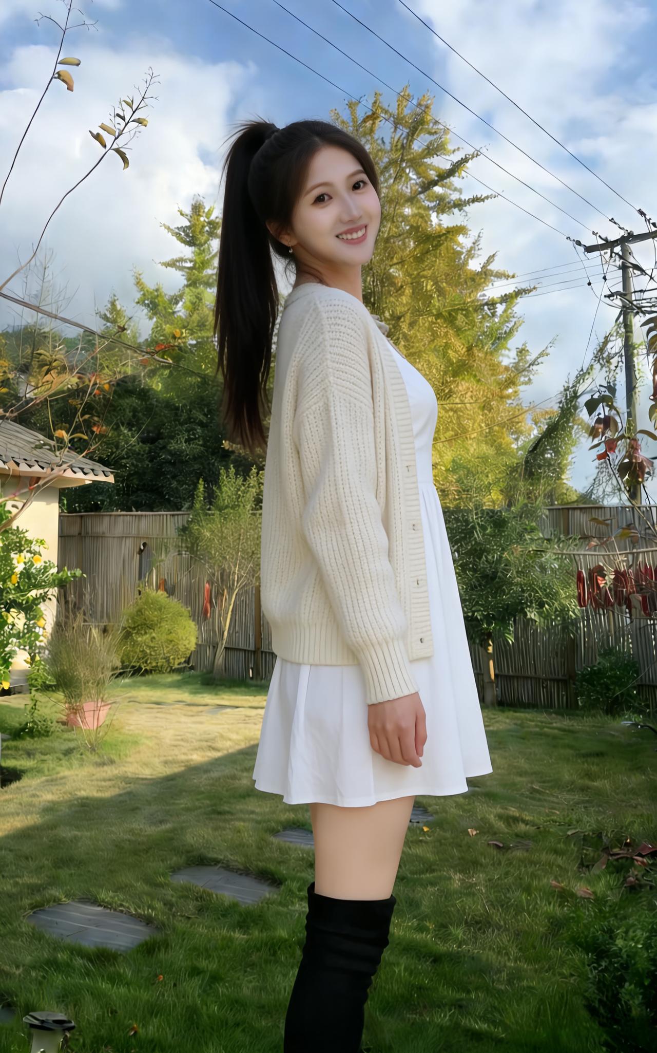 风掠过针织的纹路 把岁月的温柔,缝进驼色裙摆 树影在秋风摇晃 她笑时,阳光落了满身
