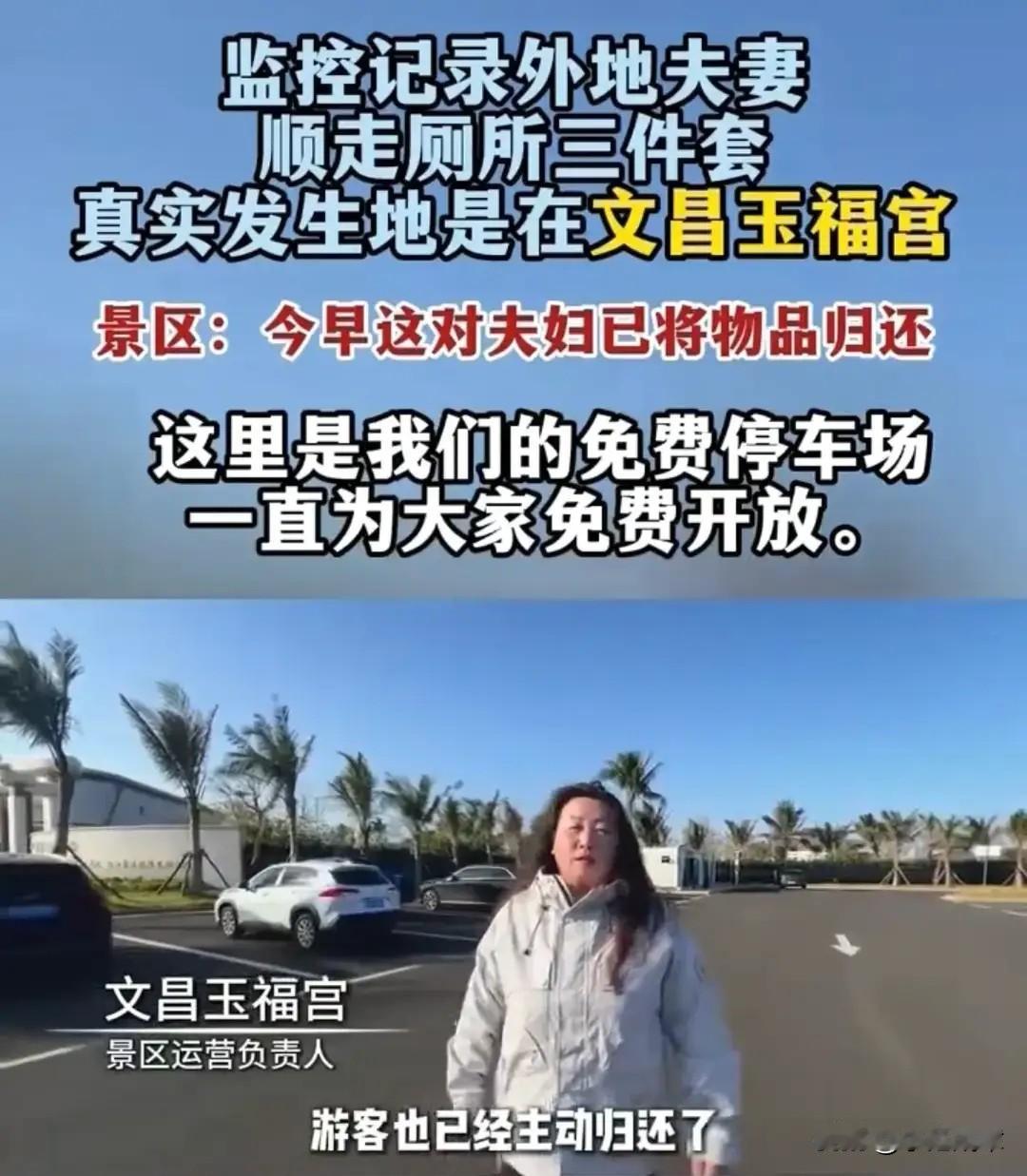 “已经归还” 近日,一对夫妻在广西偷走厕所垃圾桶和扫帚的视频在网上引发的热议,特别是东北人简直是急坏了,纷纷觉得太丢人,视频中,这两人驾驶着一辆黑字车牌的小轿车,上了厕所后,居然顺手把里面的扫帚和垃圾桶拿上车,就好像从家里拿走属于自己的物件一样。 据了解,本来这只是一件小事,毕竟不是什么贵重物,厕所阿姨在打扫的时候,发现东西不见了,给领导说了这事,想着及时把工具给填补上即可。 可是人家领导不信,认为这是厕所阿姨的失职,所以查了监控,这才还原了真相,差点把阿姨给冤枉了。 有人说,这是广西本地人吗? 视频中的这两个人衣着,确实不像广西本地人,再结合开着黑字头的小车,因此可以判定是黑龙江人。 事情曝光后,顿时在网上炸锅了,对于东北人小偷小摸的小毛病,算是彻底实锤了,很多人都说东北人到哪里都认为是野生的,顺手就拿走偷走,似乎已经成了刻在骨子里面的习惯。 注意,网友们发明了这个词,野生的物件。据说是东北人在海南看到路边的菜以为没人要,就顺手拿走,因此得名。 1月8日,海南官方证实,这件事不是发生在广西,而是在海南的文昌某个景区,目前两个人已经乖乖的主动把东西给归还了,他们不能不还呀,几乎全网都知道了。 在此希望所有出来旅行的朋友,不要贪图小便宜,不是自己的东西,不可随意偷拿,因为这不是个人问题,一定要做个文明的游客呀。 对此,您怎么看?