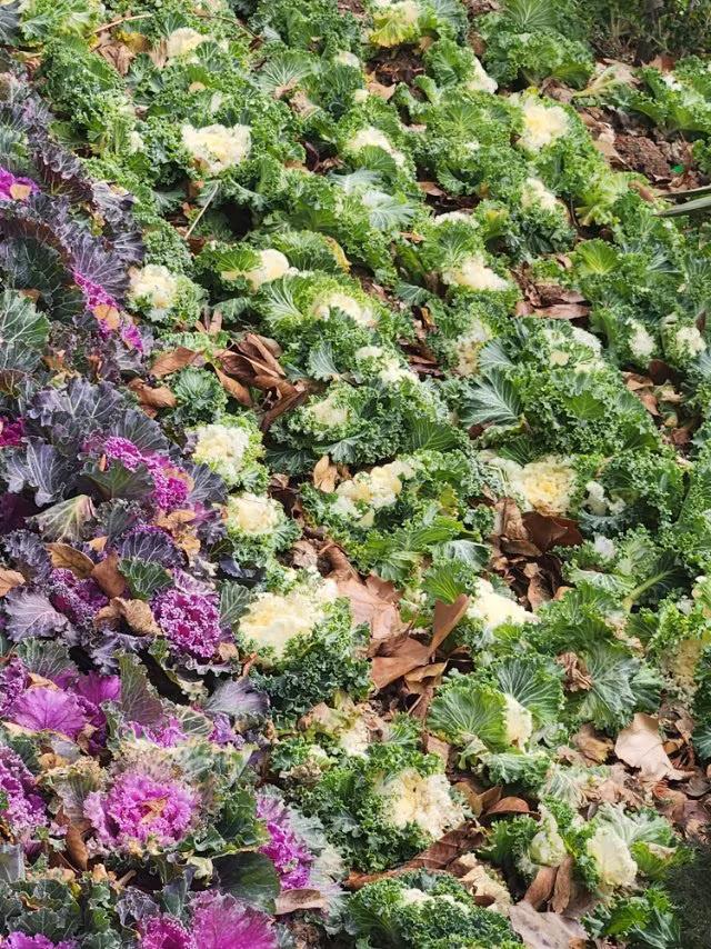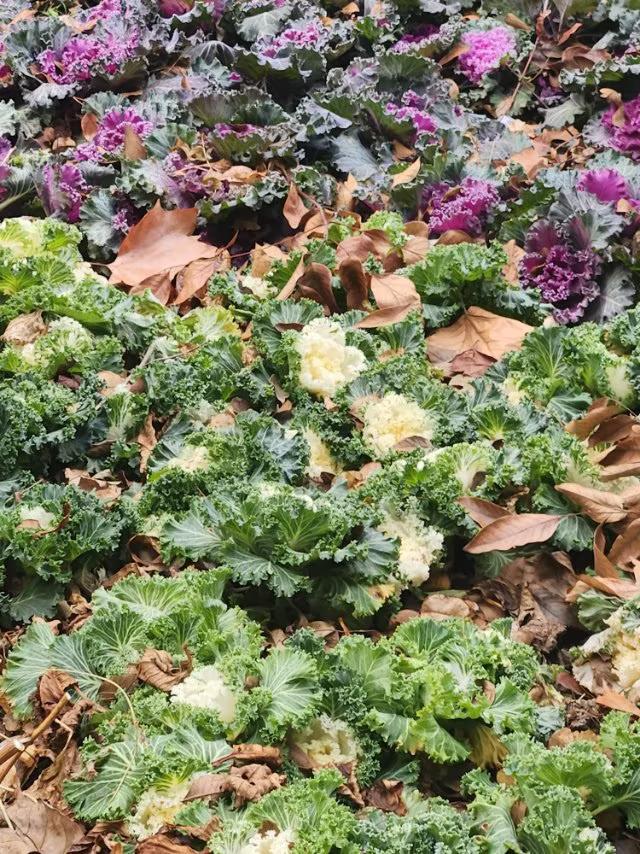 羽衣甘蓝的花语知多少 羽衣甘蓝的叶片层层叠叠如牡丹,别名''叶牡丹'',其花语代表: 1、高贵与美丽:叶片色彩丰富(紫红、粉、黄等),形态艳丽如盛开的花朵,象征着高贵与美丽。 2、㊗️福与吉祥如:常用于节日装饰,寄托对幸福、顺利的期待许。 看看公路两旁的羽衣甘蓝美化的城市风景: