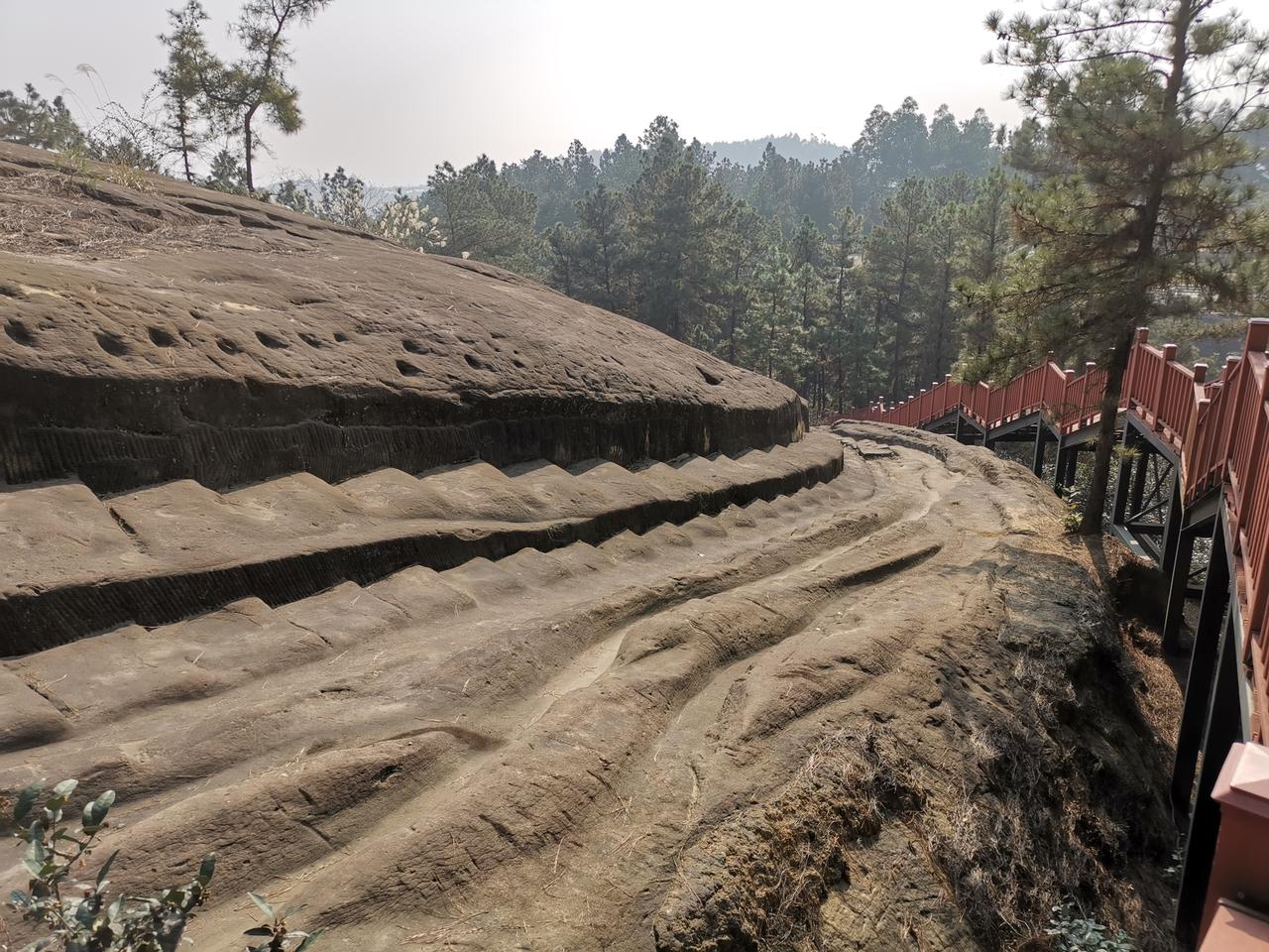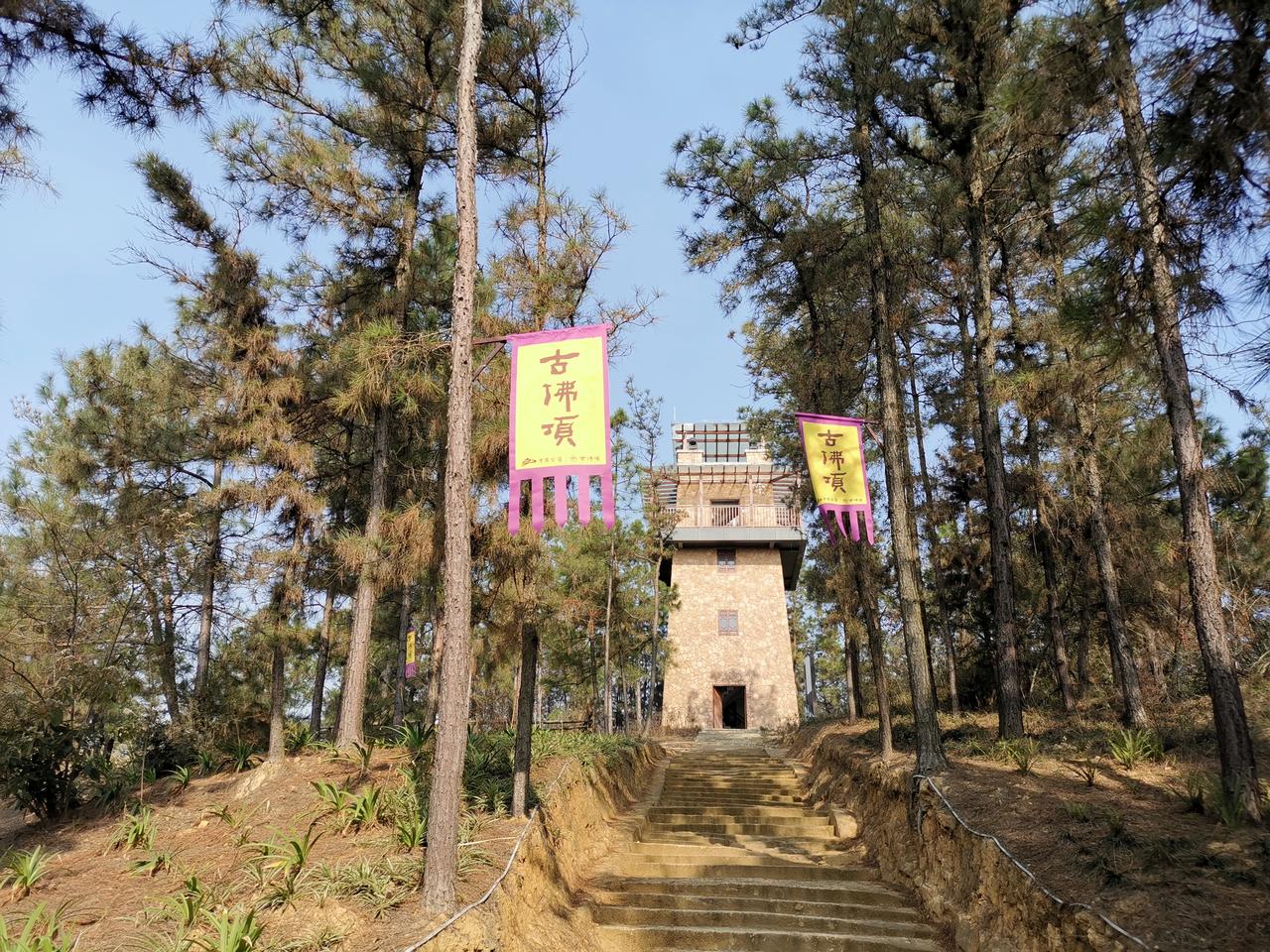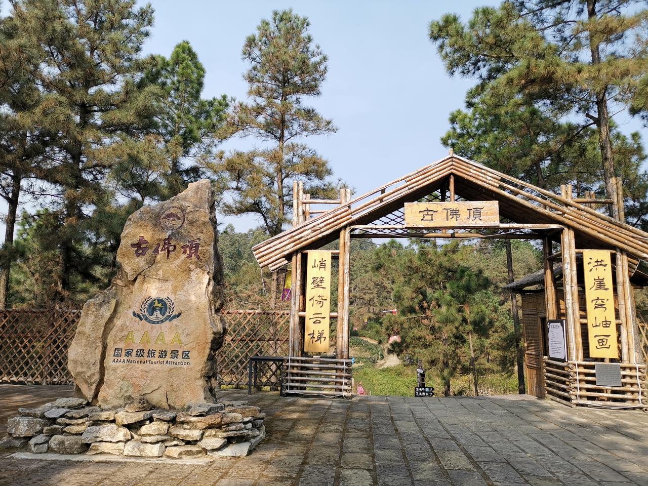 《游威远古佛顶景区》 一一今游古佛顶,有感而作 千年盐煤道,辙深客迹空。 林深鸟语寂,丹崖显遗风。 高冠四星匾,徒围十里松。 残碑沉烟霞,谁忆旧驼峰?