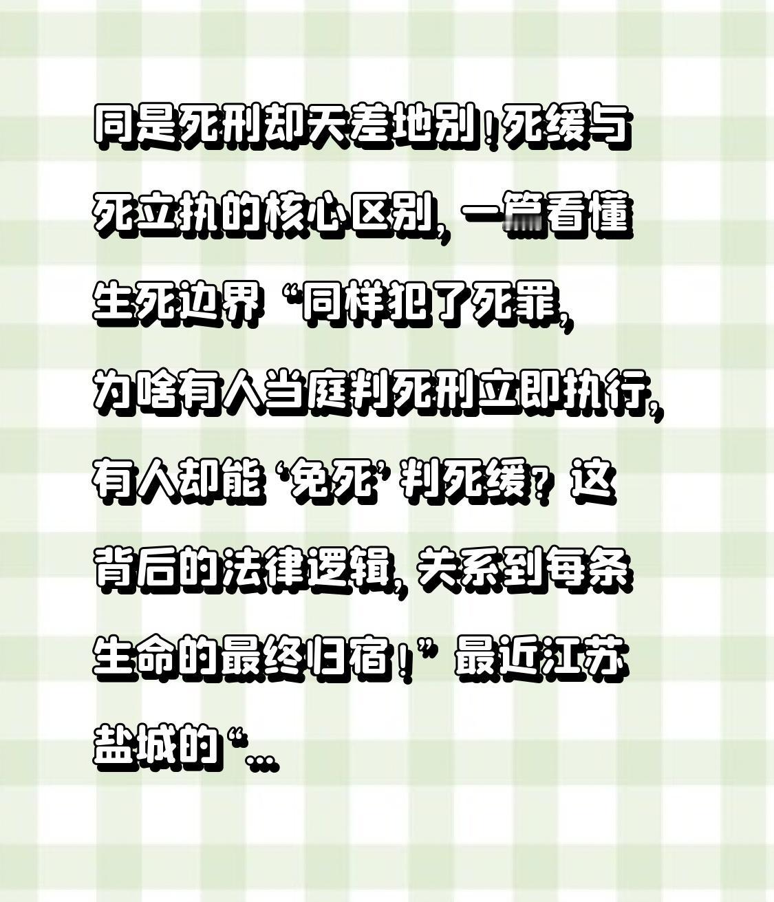 同是死刑却天差地别!死缓与死立执的核心区别,一篇看懂生死边界 “同样犯了死罪,为啥有人当庭判死刑立即执行,有人却能‘免死’判死缓?这背后的法律逻辑,关系到每条生命的最终归宿!” 最近江苏盐城的“鸡粪命案”刷屏全网:邻居王某因邻里积怨,蓄意驾车撞死高三男生张俊豪,庭审中还当庭翻供,直到检察官建议“死立执”才跪地求饶。最终法院判处其死刑立即执行,这个结果让无数网友直呼“大快人心”。可也有人疑惑:同样是死刑,死缓到底是什么?是不是“花钱买命”的漏洞?今天用最接地气的话,把这事说透! 先划重点:死缓不是独立刑罚,而是死刑的“暂缓执行”方式,和死立执的核心区别,就在于“是否必须立刻剥夺生命”。简单说,死立执是“罪大恶极,没商量”,死缓是“罪该处死,但给一次悔改机会”。 法律上的判断标准很明确:死立执针对“罪行极其严重+主观恶性极大”的情况。像王某这样,蓄谋报复、追逐撞击、事后毫无悔意,甚至当庭翻供,社会危害性达到极致,就属于“必须立即执行”的范畴。而死缓的适用条件是“应当判处死刑,但不是必须立即执行”,比如有自首、立功表现,或者被害人有明显过错,再或者认罪悔罪态度极好、积极赔偿获得谅解的 。 最关键的转折来了:死缓不是“免死金牌”!被判死缓后,会有2年的考验期。这2年里如果没犯故意犯罪,就减为无期徒刑;有重大立功表现(比如揭发重大犯罪、舍己救人),还能减为25年有期徒刑,实际执行刑期最少15年(不含考验期) 。但如果在考验期内再犯故意犯罪,一经查证,直接报请最高法核准执行死刑,一点余地都没有。 举个真实例子:某杀人犯因激情杀人后主动自首,赔偿家属获得谅解,被判死缓。考验期内他积极改造,还发明了监狱安全设备,有重大立功表现,2年后减为25年有期徒刑。但另一个死缓犯在狱中殴打狱友致重伤,构成故意伤害罪,最终被核准执行死刑。 网友常问“死缓是不是对受害者的不公”?其实法律早有考量:死立执彰显的是“正义不可违”,针对罪无可赦的恶魔;死缓体现的是“宽严相济”,给有悔改可能的罪犯一条生路,也减少死刑的实际执行,这是法治进步的体现 。就像江苏这起案件,王某直到面临死立执才道歉,这种虚伪的悔悟,根本不符合死缓的适用条件。 说到底,无论是死立执还是死缓,核心都是“罪刑相当”。法律既不会放过一个恶人,也不会放弃一个愿意悔改的人。了解这些区别,不是为了钻法律漏洞,而是要明白:每个判决的背后,都藏着对生命的敬畏和对正义的坚守。 你觉得哪些情况该判死立执?死缓制度是否合理?评论区聊聊你的看法,也转给身边人,一起学法懂法,守护公平正义!