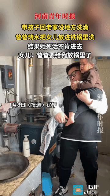 “爸爸要把我煮了!”辽宁,父母带孩子回老家没地方洗澡,爸爸就在锅里烧了热水,担心