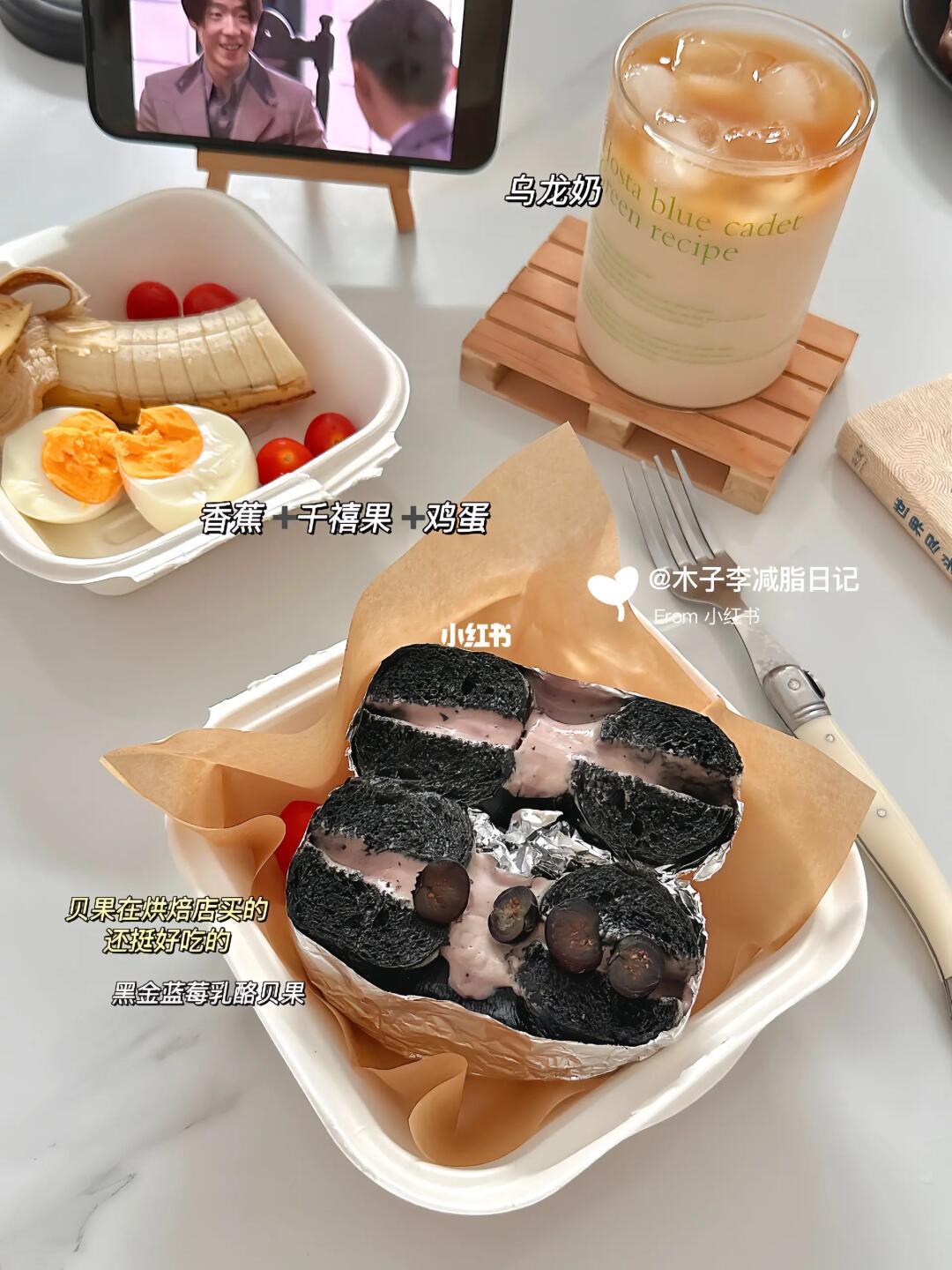 ●原体重:120斤 | 现重:90斤 | 已↓30斤 - 🥣早:蓝莓乳酪贝果 牛奶乌龙茶 香蕉 鸡蛋 🥣午:芝士酥 黑芝麻月饼 黑咖啡 🥣晚:家常菜 🥣加:黑豆水 阳光玫瑰 💧喝水2000ml 🏋️运动:🈚 - 💭楼下烘焙店买的蓝莓乳酪贝果真的好好吃呀,今天是真馋甜 中午就吃了个芝士酥和月饼,配着喝黑咖啡解腻! 💭黑豆水第一次煮着喝 不错哦 没有我想的难喝 喝着还蛮香的!家里有个小饭搭子真好 陪我喝喝茶吃吃水果~