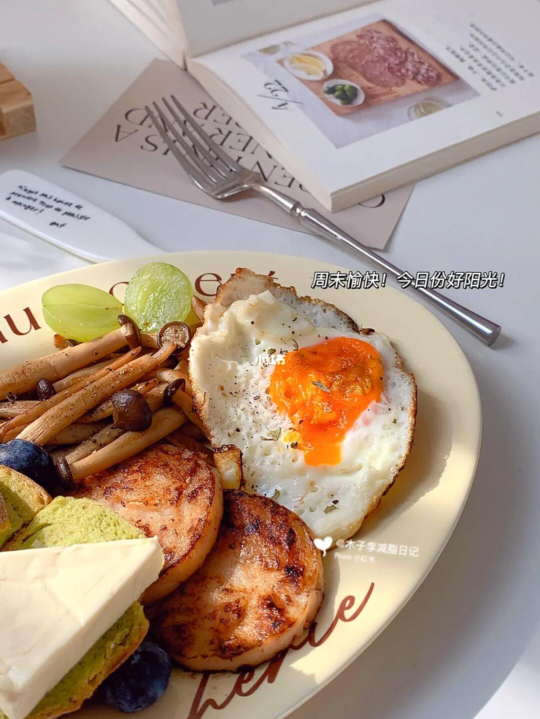记录一日两餐、好好吃饭也能瘦! 🔹初始体重:120斤 🔸现重:89斤 —— 🥯早餐:斑斓米面包|煎蛋|虾饼|海鲜菇|蓝莓|燕麦奶|青提| 🥣午餐:外食 🥣早餐:吃了窑鸡|喝了鸡汤 💧今天喝水量2000ml➕ —— 偶尔摆烂也是一中程度上的自律,对吧? 周六和朋友约了饭,陪了小孩逛街! 有时沉下心去感受生活的美好,放下手机,身心都舒畅了! 周末愉快!