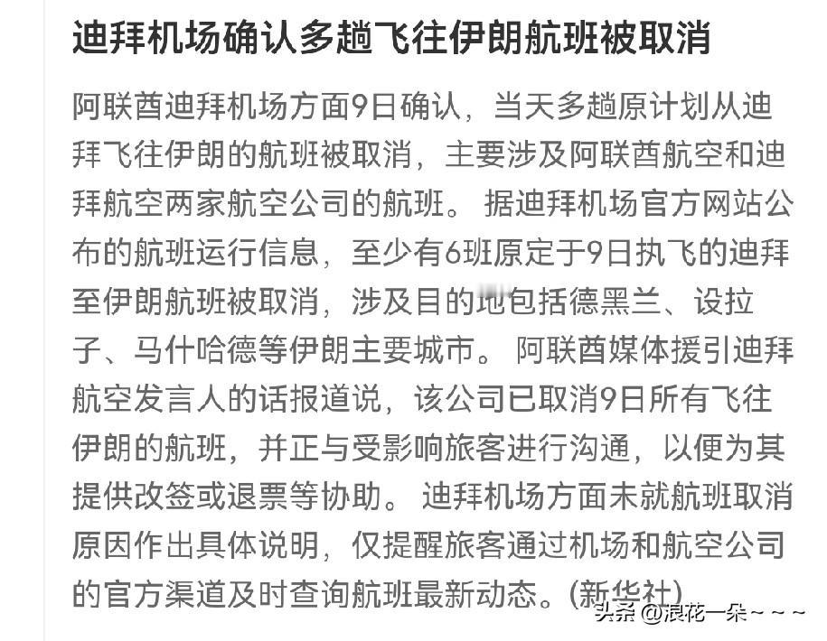情况不太对呀! 刚刚看到,迪拜机场多趟飞往伊朗航班被取消了,此前土耳其多趟航班飞往德黑兰的也被取消了… 这大周末的,一下子取消了这么多航班去伊朗到底是什么情况?不会又有什么事情发生吧?以色列和美国可是经常在周末和晚上搞偷袭的。 当然,也许是目前伊朗国内抗议游行比较多,有点混乱,各航班为了前往伊朗的人员能够安全才取消的吧。 此前,伊朗外长说,伊朗已经做好了各项应对战争的准备。