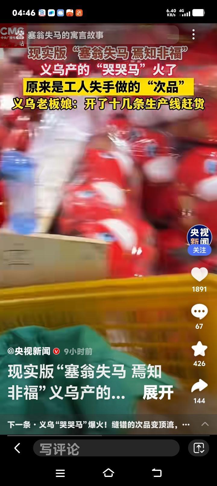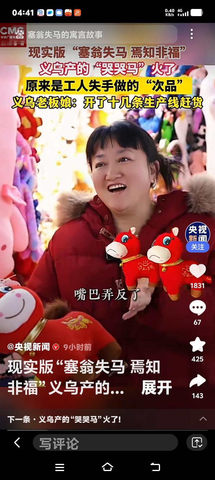 义乌“哭哭马”一夜爆火全网:缝反的嘴,撞上亿万人心,老板娘连夜开十几条生产线也赶不上订单! 当一匹本该微笑迎新的马年公仔,因为工人一个手误被缝反了嘴巴,露出委屈巴巴的“哭哭”表情时,谁也没想到,它会成为2026年开年第一个现象级爆款。这只来自义乌的“次品”小马,正以席卷之势冲上热搜,订单多到老板娘要连夜开动十几条生产线。这哪里是玩具,这分明是照进我们心里的一束光。 无数年轻人正在为这只“不完美”的小马疯狂。它没有标准化的笑脸,反而那抹向下耷拉的嘴角,透着一股真实的沮丧和无奈。在每个人都在努力扮演情绪稳定的成年人的今天,一只被允许“哭”的小马,成了我们不敢流露脆弱的替身。它静静坐在那里,就替我们说出了那句:“好累,但没关系。” 这匹马的逆袭,狠狠打了“完美主义”一记响亮的耳光。我们厌倦了滤镜下的生活,厌倦了必须积极向上的压力。当社交平台上充斥着光鲜亮丽时,一点真实的“瑕疵”反而显得无比珍贵。“哭哭马”的走红,是一场集体共鸣:我们终于可以公开欣赏并拥抱一种“不完美”的真实,并为这份真实的情感链接买单。 义乌商人的敏锐嗅觉,再次让世界惊叹。从发现网络热度到决定批量生产“错版”,再到生产线全开,可能仅仅用了不到48小时。这不是运气,这是深植于“世界超市”骨髓里的市场反应速度。他们读懂了情绪消费的密码,将一次生产事故,瞬间转化为一场情感营销的胜利。这种应变能力,正是中国制造最生动的底色。 镜头转到热火朝天的义乌车间,机器轰鸣,工人们忙碌地缝制着那一张张独特的“哭脸”。老板娘的电话响个不停,全是催单的声音。这场由意外引发的狂欢,背后是一条成熟产业链的高效运转。它证明了中国制造不仅能大批量生产“标准答案”,更能迅速拥抱并放大那些充满生命力的“美丽意外”。 哲学家说,万物皆有裂痕,那是光照进来的地方。“哭哭马”的裂痕,恰恰缝进了这个时代最稀缺的温情。它不像传统吉祥物那样只许诺虚无缥缈的福运,而是用它的“不开心”,稳稳地接住了我们的疲惫。它告诉我们,先接纳情绪,再轻装上阵,这何尝不是一种更高级的祝福? 当然,爆款的生命周期总是面临挑战。但“哭哭马”的故事给予我们更深层的启示:比创造爆款更重要的,是读懂爆款背后的人心流向。中国制造的升级之路,不仅需要硬核科技,也需要这般细腻捕捉并呵护大众情绪的能力。从满足功能到抚慰心灵,这或许是未来更广阔的赛道。 一匹小马,一次失误,一场温暖的逆袭。它从义乌的流水线出发,跑进了无数人的心里。这个故事关于接纳,关于真实,也关于在庞大工业体系中未曾泯灭的、灵活应变的人性之光。捧在手心的“哭哭马”,仿佛在轻声说:想哭就哭吧,哭完,咱们再一起向前奔跑。 (来源:根据央视新闻、浙江总站等多家媒体报道综合撰写) 情绪消费 中国制造