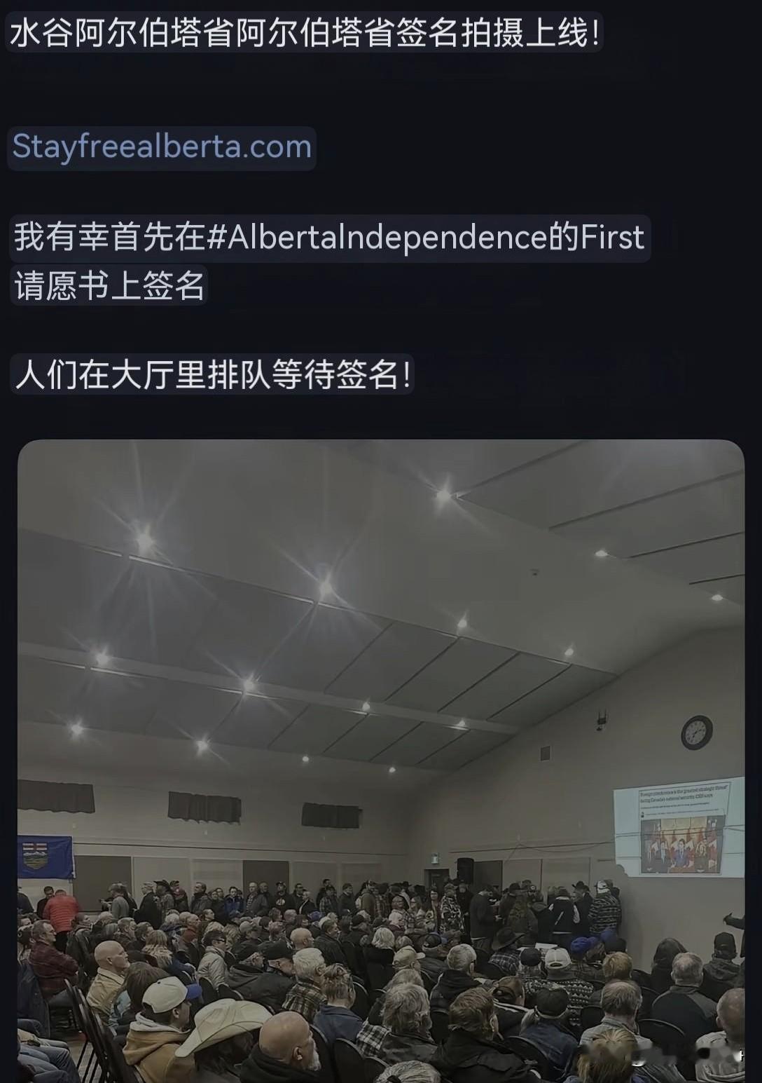 看到这条消息,您还觉得特朗普是在开玩笑吗? 加拿大已经逐渐被美国蚕食,一个省很快就要独立了。 加拿大的中西部,地区有一个阿尔伯塔省。 这是加拿大非常重要的产油区,石油储量是非常丰富的。 总人口400多万,首府埃德蒙顿,1905年加入加拿大联邦。 从去年开始,这个省就已经有了独立的迹象,民众纷纷提议要进行独立公投。 进入到了2026年1月份第1次投票终于开始了。 这一次投票属于收集签名阶段。 组织者至少要搜集18万个本地居民的签名。 公投的问题只有一个,就是说你是否同意本省独立出来。 只要有18万个本地居民签字,认可独立。 后面就可以逐渐一点一点推进新的公投。 最终全省200万人正式开始大规模的独立公投。 只要超过半数的民众选择了独立,那么这个省就可以脱离加拿大了。 未来是不是加入美国呢?只需要再来一次公投就可以了。 现在当地居民已经进入到了排队签名的阶段。 还是那句话,特朗普真的是来真的。