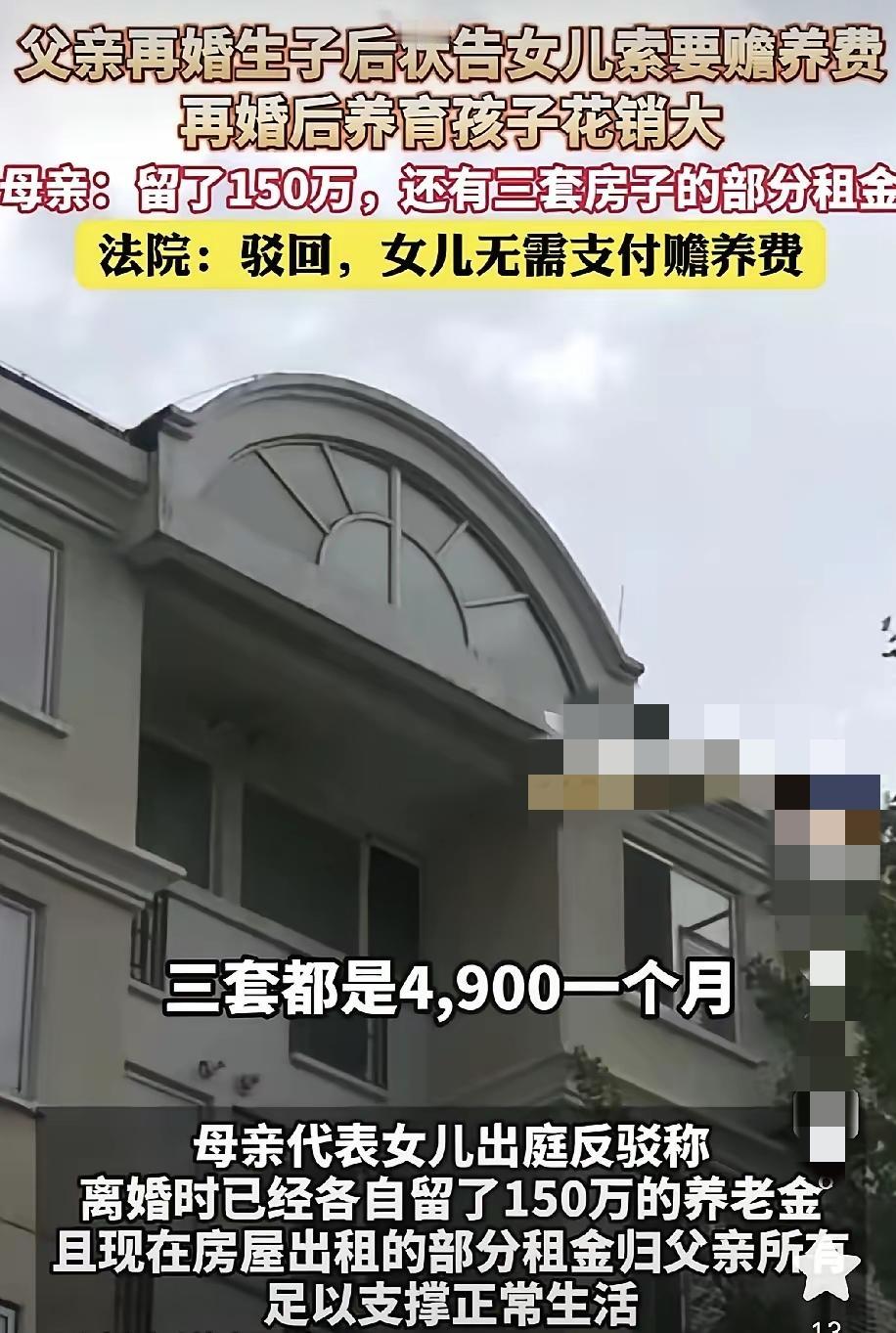 男子离婚获150万+3套房,却让前妻女儿付赡养费!法院怒斥:别把孝心当提款机!