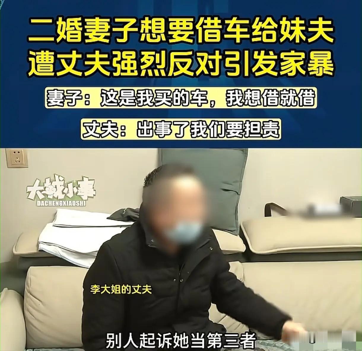 二婚妻子想要借车给妹夫,遭到丈夫的强烈反对,没想到二婚妻子居然语出伤人,这是我买