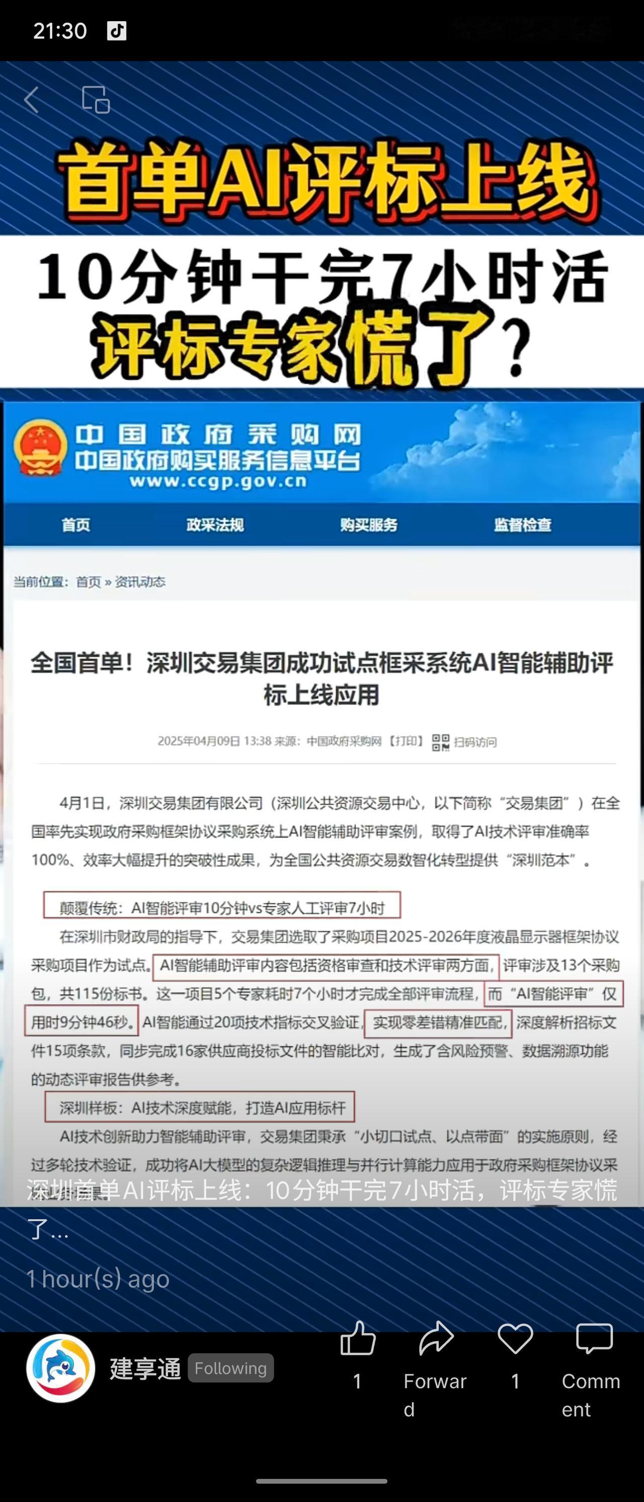深圳首单AI评标落地,效率惊人。评审115份标书,人工需7小时,AI仅用不到10分钟,引发专家对角色存续的担忧。AI能完成交叉验证、条款解读等复杂工作,且不受情绪影响,使评标更理性、公平。