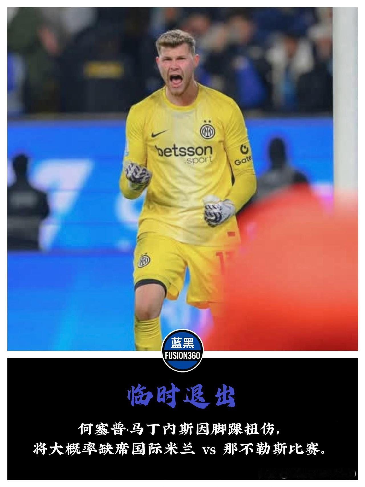 刚补好篱笆,看大门的却倒了!国米这运势太搞心态 老天爷是真不想让齐沃打富裕仗。 眼看就要拿着“满级号”去拼那不勒斯,结果防线刚补齐,门将位置又炸了。这哪是备战?简直是在玩“拆弹专家”。 更衣室的旋转门,从来不讲道理。 坏消息是:替补门将马丁内斯崴了脚,打那不勒斯基本没戏。 好消息是:达米安和迪乌夫这两个“老病号”,终于从病房爬出来跟队合练了。 这剧本太搞心态:刚把防线的漏洞堵上,替补守门的却瘸了。 这将是齐沃面对的残酷真相:你永远别想凑齐最强阵容去拼刺刀。 伤病名单就像个“能量守恒”的黑洞,一边补血一边放血。 马丁内斯这一倒,意味着门将位置容错率直接归零,主力必须死扛到底。这波“一进一出”,国米的影响几何?国际米兰 💙🖤