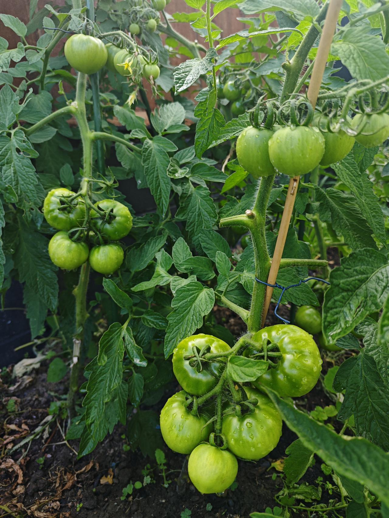 西红柿红了 两个月前种的西红柿苗,而今终于看到它结的西红柿红了![捂脸] 说到西红柿,这可是我最爱的蔬菜了,既能当蔬菜炒着吃,还能当夏季水果吃,真是既方便又实惠的亲民蔬菜了! 刚来奥克兰,第一次到华人超市,看见西红柿的价格,都能惊掉我的下巴。一公斤是5.99纽币,合人民币二十六七块。回来后就督促女儿,赶快去买蔬菜苗…… 我们是10月31日种的西红柿苗,隔天浇水,一周一次施肥,西红柿苗总算慢慢壮实起来了。 网上也说了,从种上苗到收获,正常也得两个多月,哈哈,终于等到了! 现在变红的这两颗西红柿,也是菜园里最先长出来的那两颗,不过速度有点慢,个头也不大,主要是心太着急的原因吧!不过不要紧,其他兄弟苗上的西红柿比它大多了…… 当时只买了8棵西红柿苗,尽管看着产量还不少,这要是放开吃,根本不够哈!后悔种的有点少哈! 看着慢慢泛红的西红柿,我就开始想象着西红柿炒鸡蛋、西红柿炒肉片、西红柿炒豆腐、洋葱西红柿沙拉、糖拌西红柿等等吃法,想着都美滋滋的哈……[捂脸][捂脸][捂脸]