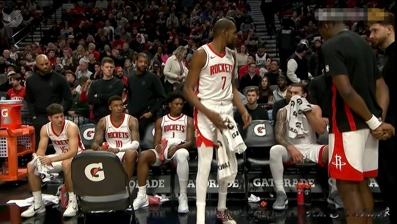 火箭当家球星杜兰特真是怒火烧天!在今天火箭客场挑战开拓者的比赛中,当时比赛进行到了第四节的一分多钟,火箭以101:102落后于对手,形势看起来非常不妙。当转播镜头给到火箭的替补席时,只见杜兰特先是异常生气的怒摔水瓶,接着杜兰特起身之后怒视队友,整个人看起来特别生气。 值得一提的是,火箭在第三节比赛结束时以90:77领先对手。