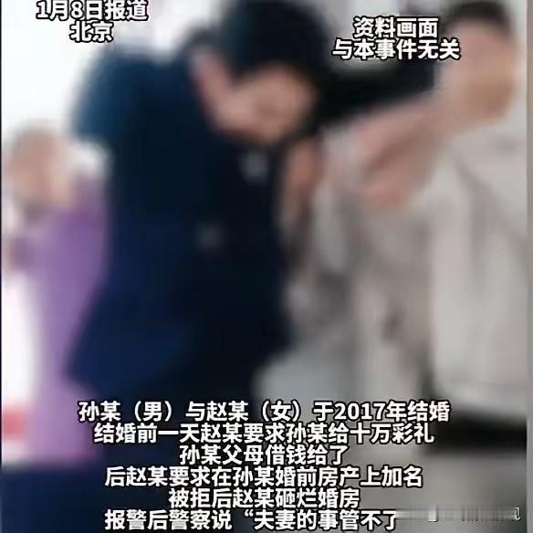 两败俱伤!北京昌平,女子在结婚前一天,提出加10万彩礼,不给不结婚,男方父母借钱满足了女子的要求。婚后不几天,女子再次提出在丈夫婚前房产上加上她的名字,被拒绝后,女子将婚房砸得稀巴烂。不久双方分居,男方两次诉讼离婚被驳回,分居7年后女子患癌,男子第3次起诉离婚成功,女方分割财产外,又要求男方承担所有医药医疗费,身体营养费50多万,再加10万元补偿。男方:这哪是婚姻?就是妥妥的孽缘! 孙某觉得自己真是太窝囊了,自结婚前一天,女方就开始出幺蛾子。 婚后不久分居,起诉三次离婚,愣是离不了。 第3次法院终于判了离婚,女方又要求承担她看病的所有费用,还要补偿她10万元。 一个大男人,被一个患病女人生生坑完全部家底。 孙先生和赵某是在2017年结婚,婚前满足了女方所有的条件。 准备好了婚庆,酒席都定了,亲朋好友也通知了,就等第2天一早去接新娘了。 不料就在结婚前一天,赵某突然提出,再加10万元的彩礼。 孙先生一家为了他结婚,已经花光了所有的积蓄,根本拿不出10万。 赵某坚决不通融,不给10万就不结婚。 公婆觉得,已经到了这个地步,明知道是女方故意为难,他们也认了。 公婆借了10万块,让儿子完成了人生大事。 本以为婚后只要女方好好过日子,一切也就值了。 然而孙先生一家还是想错了,有的人结婚,不是为了好好过日子,而是为了霍霍婆家。 果然,结婚没几天,小夫妻还在蜜月,赵某就提出在孙先生的婚前房产上,加上自己的名字。 因为还在新婚期,孙先生虽然不同意,但并没好意思直接拒绝,他推脱说过几天再说。 赵某却步步紧逼,孙先生看出赵某的贪婪,直接拒绝了妻子的无理要求。 万万没料到,为了逼孙先生就范,赵某直接把婚房砸了个稀巴烂。 这下孙先生彻底寒了心,他马上报警。 警方虽然出警,但称是夫妻的事管不了,事情不了了之。 不久两人就分居了,这一分,两人再也没在一起。 2021年的1月,孙先生对这段婚姻彻底失望,起诉到法院要求离婚。 法院认为,夫妻之间还有感情,孙先生的离婚诉讼被法院驳回。 但两人的关系,仍处于分居状态。 当年年底,孙先生对婚姻不抱任何希望,只好第2次起诉离婚,但仍被驳回。 事情拖到了2022年,赵某查出患有胃癌,及重度抑郁,经多次治疗病情稳定。 2024年,孙先生已经在这段无任何希望的婚姻里,被困了整整7年。 他忍无可忍,在2024年6月,第3次诉讼离婚。 一年后,2025年6月,法院判决二人离婚。孙先生终于得以解脱。 但赵某并不想放过他,随后提起上诉。 当时判决还没生效,赵某称二人仍属夫妻关系。 自己之所以患病,是因为孙某长期对她冷暴力导致。 赵某要求,孙先生必须支付自己看病的医药费20万。 住院期间产生的交通费1.2万元,租房费8.2万元,社保12.3万元,患病后的生活费12万元。 另外要求,孙先生在未来3年,每月支付她4000元的标准营养费、离婚损害补偿10万元,共计60多万元。 孙先生觉得自己简直倒霉透了,这段婚姻纯属孽缘,自己被害得遍体鳞伤。 终于离婚了,还要再拿出60万,实在太难了! 孙先生称,离婚时自己将房产增值9万多,加上3万多经济帮助,以及公积金、账户余额等,分割给赵某。 她再逼自己要这么多钱,属于重复要钱。 况且自己已失业多年,现在工作刚刚稳定,但工资都不够4000元。 为了尽快和赵某扯清关系,孙先生愿意每月拿出1000块钱,按两年支付给赵某。 法院审理后认为,赵某患病,并非因为操持家务所导致,而且赵某现在能完全自理。 因此,对其提出孙先生承担全部医疗费,及支出营养费的要求不予支持。 这段婚姻,其实就是一起悲剧,婚姻里的两个人谁也不幸福。 一个被困,离又离不了,最终在这段短暂的事实婚姻里付出了:彩礼、房产的分割、经济上的分割,最终另补偿7万。 女方也不幸福,身患重疾、抑郁,身心遭受折磨,虽然得到补偿,也失去了健康。 《民法典》第1087条:离婚时,夫妻共同财产由双方协议处理; 协议不成的,由法院根据财产具体情况,按照照顾子女、女方和无过错方权益的原则判决。 孙先生婚前房产属个人财产,增值部分9万余元为共同财产,法院依法分割合理。 女方要求加名未获支持,符合婚前财产保护原则,普通人可理解为“婚前财产不因结婚变为共有”。 《民法典》第1090条:离婚时,一方生活困难,有负担能力的另一方应给予适当帮助,具体办法由双方协议;协议不成的由法院判决。 因女方患病,法院结合其自理能力及男方经济状况,判7万元帮助款。 未支持高额医疗费等,体现适当帮助,而非全额承担。 平衡了患病方需求,与另一方实际负担能力。 最终,法院判定,孙先生再支付赵某抚养费7万元,二审维持原判。 关注@赵哥的法律观,明辨是非不上当。